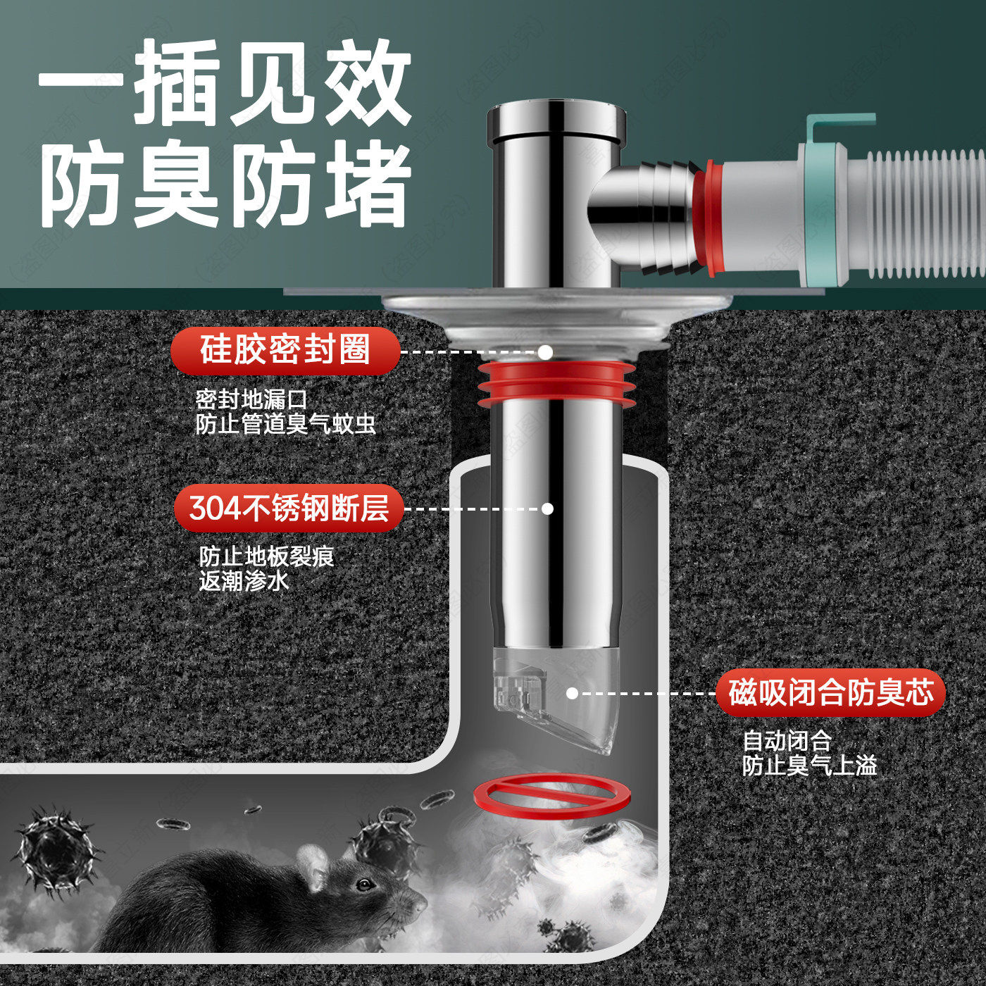 洗衣机下水管地漏接头加长断层延长管排水管二合一防臭防溢水三通