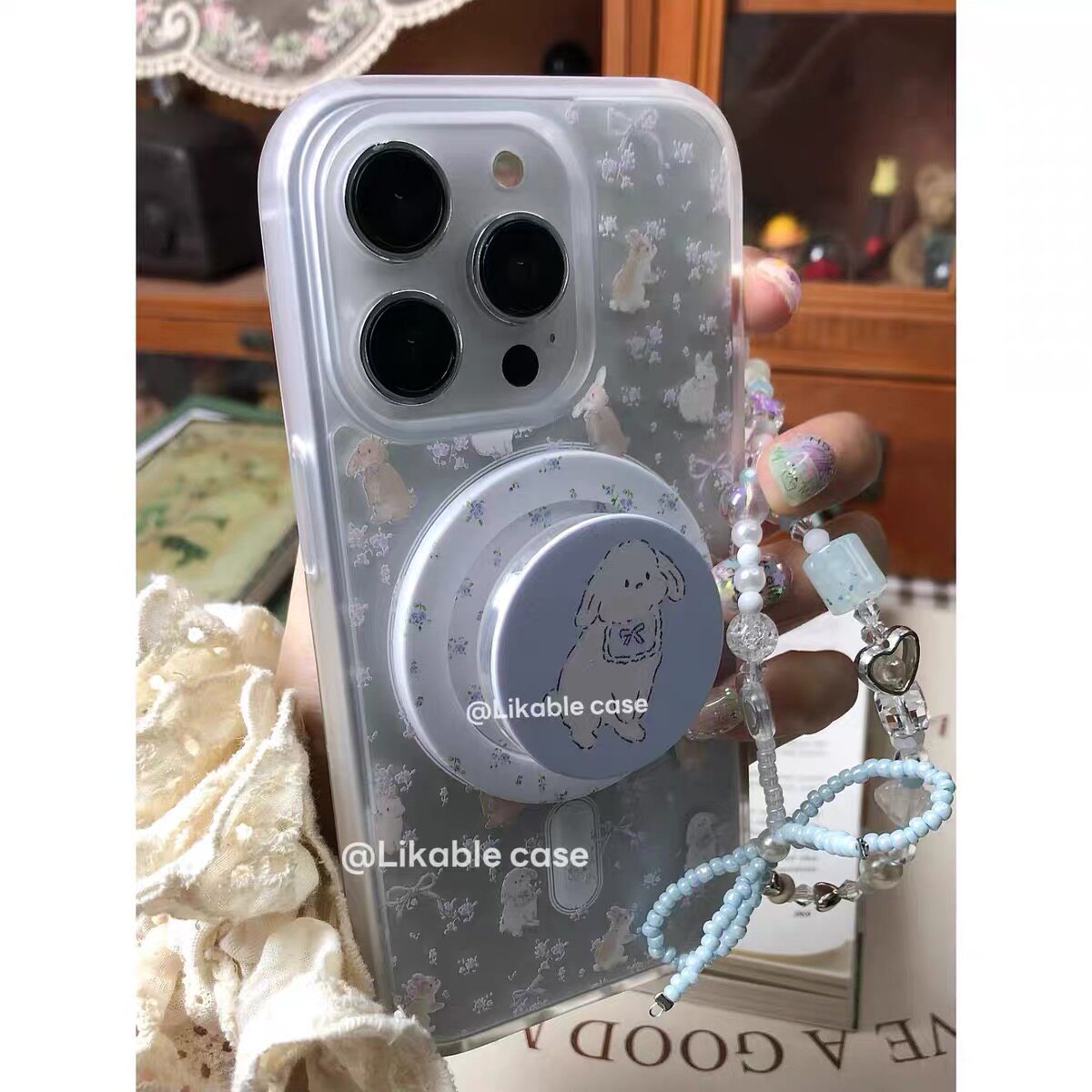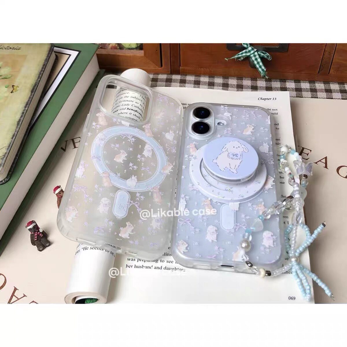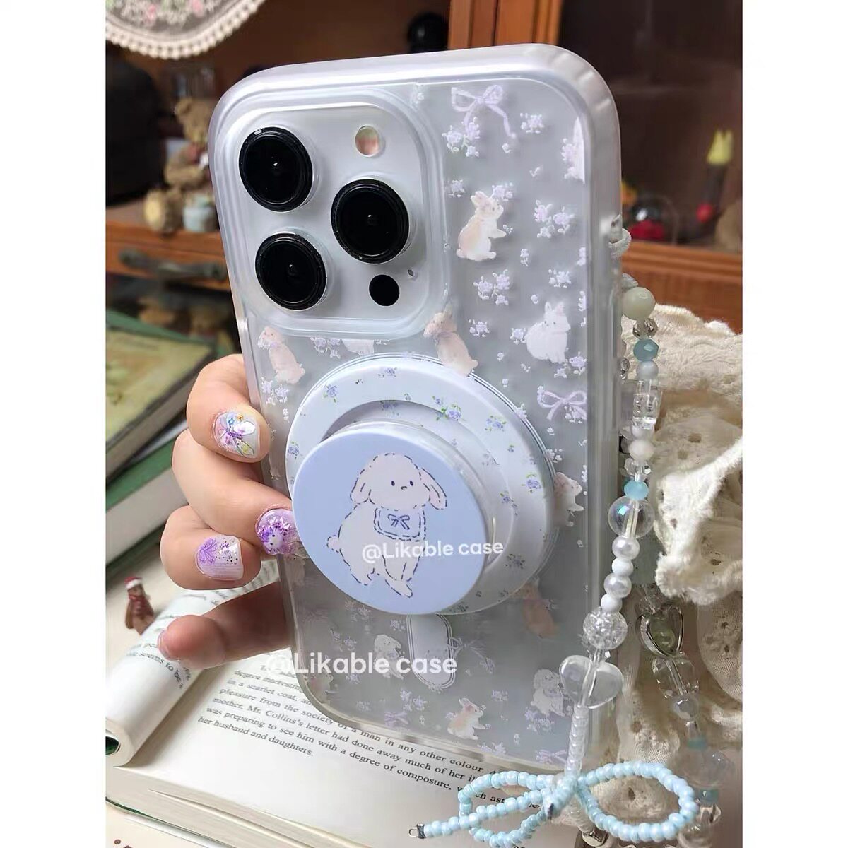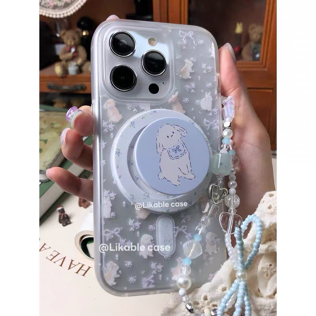 ins紫色碎花兔兔磁吸支架适用iphone15promax16手机壳苹果1413防摔11/12promax磨砂肤感xsxr女87plus夏天清新