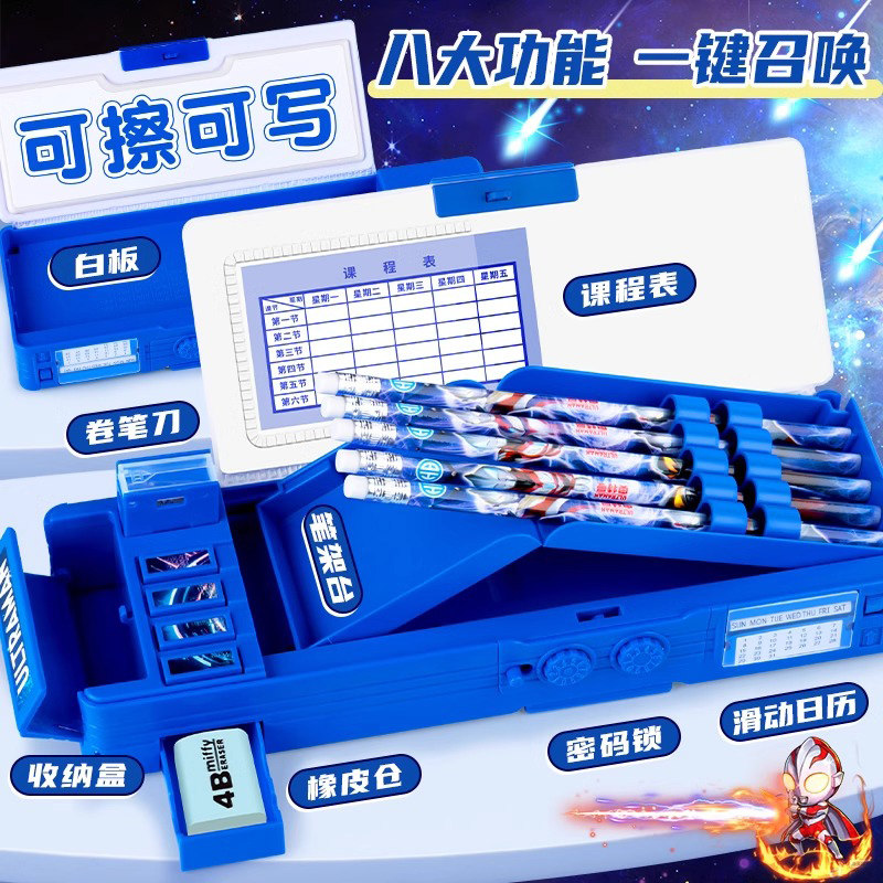 奥特曼文具盒男孩款铅笔盒多功能学生德凯赛罗机关密码儿童高科技笔盒文具套装正版幼儿园笔袋儿童生日礼物