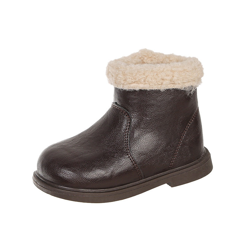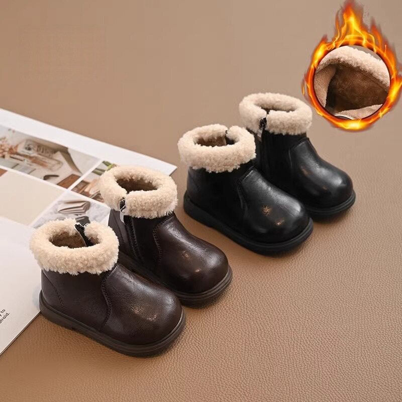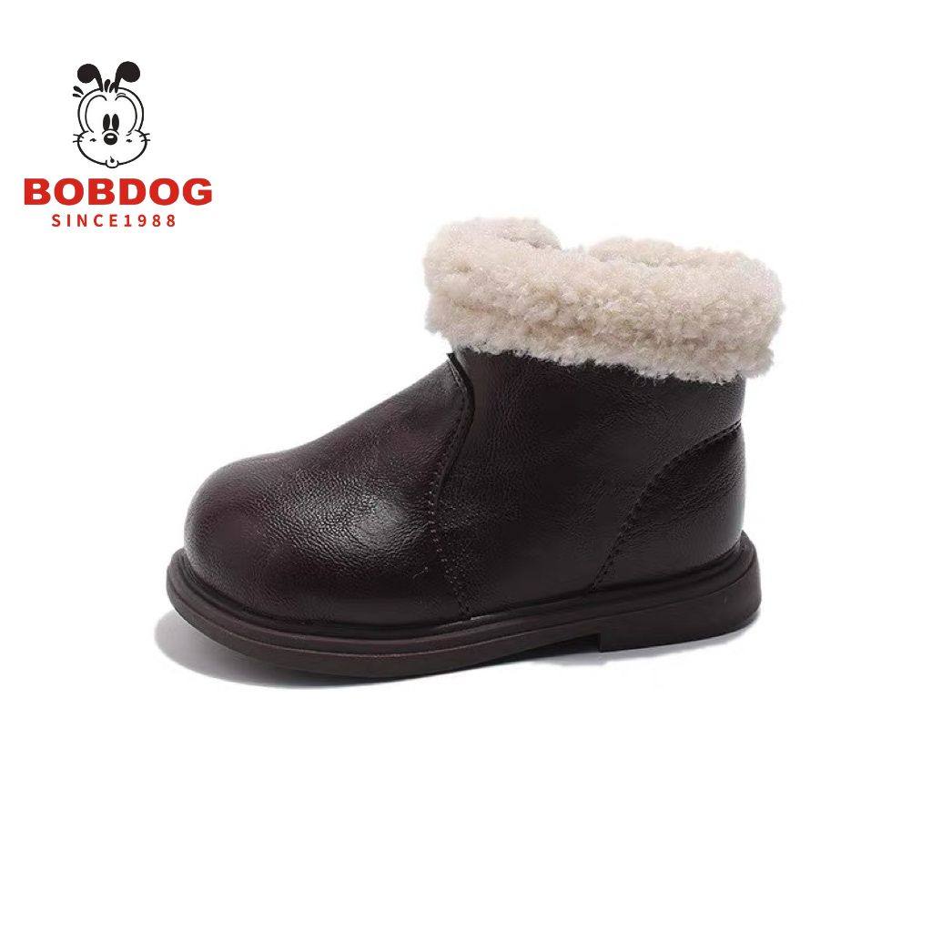 巴布豆棉鞋2025秋冬男童靴子冬季加绒儿童鞋短靴雪地靴黑色毛绒