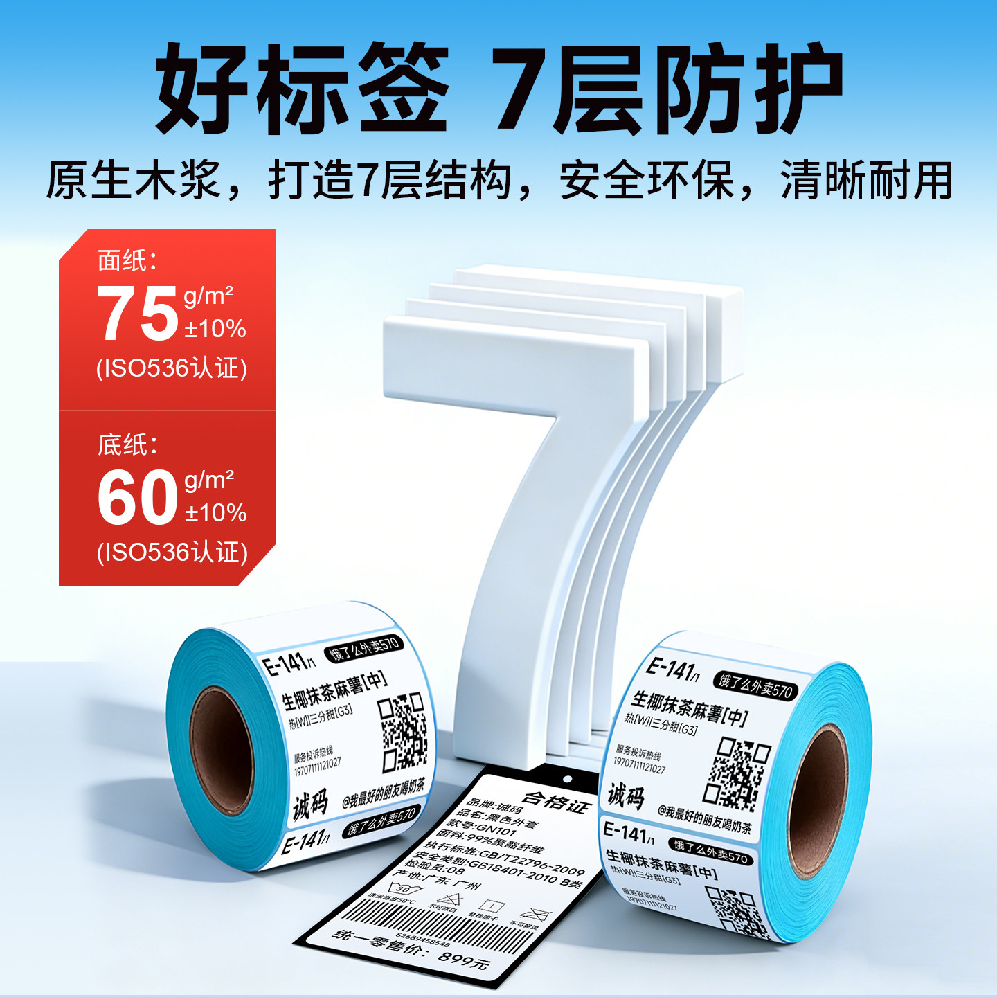 诚码三防热敏标签打印纸40*30 60 70 100衣服条码合格证快递奶茶物流外箱唛头贴不干胶标签纸不粘胶背胶贴纸
