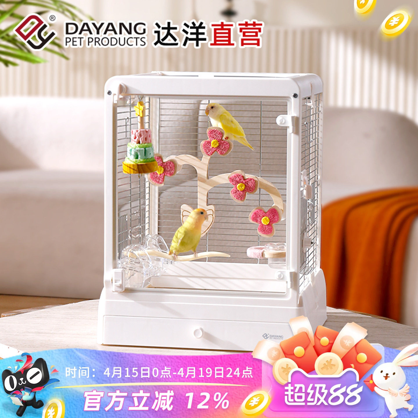 它嗅亚克力鸟笼别墅横丝小鸟笼子带水壶鸟笼玄凤虎皮家用大号别墅