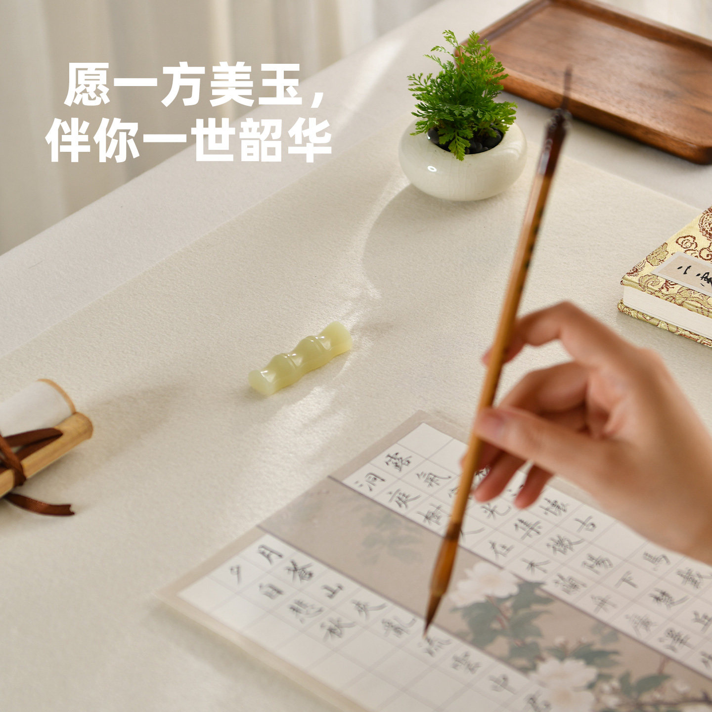 书法笔搁书法国画专用笔架毛笔笔搁天然原石岫玉手工雕刻毛笔笔托文房四宝多功能创意摆件竹节玉石镇尺镇纸