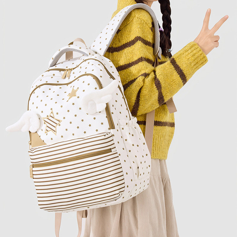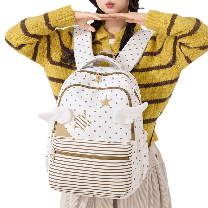 新款韩版星星翅膀双肩包女学生书包初高中大容量可爱百搭休闲背包