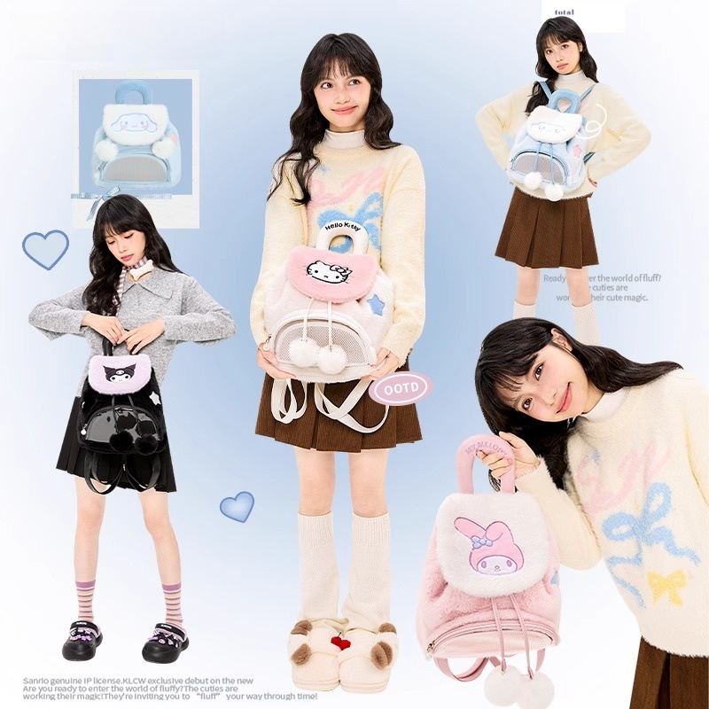 库洛米可爱毛绒包包痛包双肩小食量大容量休闲小背包新款玉桂狗