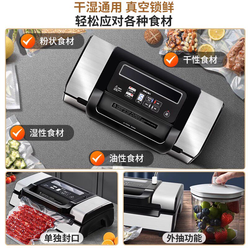 得力商用真空机家用小型一键真空封口大吸力内置切割刀干湿通用