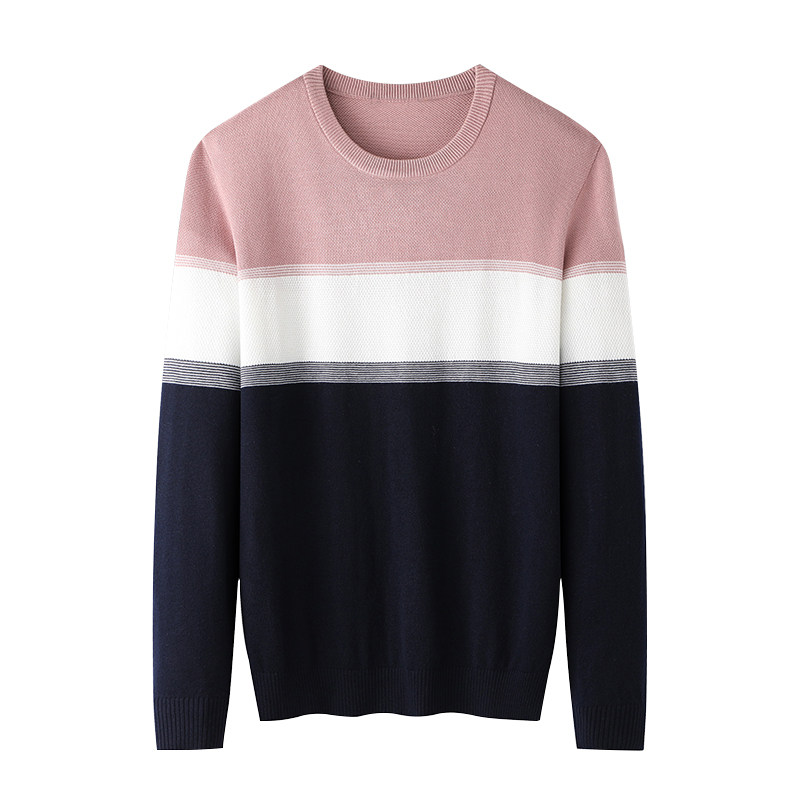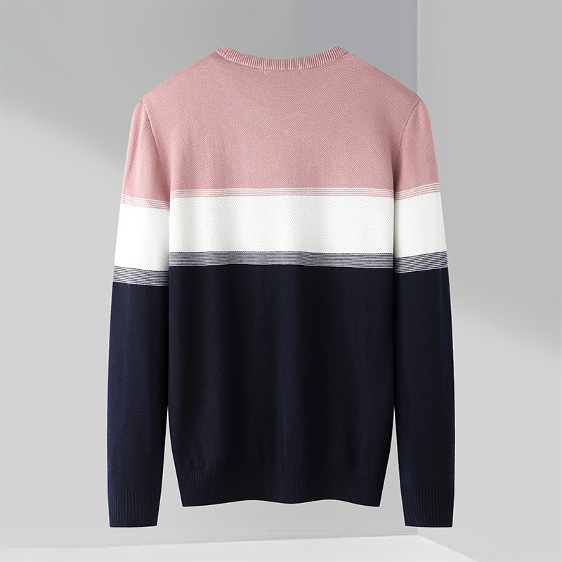 外贸大牌出口撤标秋冬男士新款经典条纹柔软舒适圆领针织衫线衣
