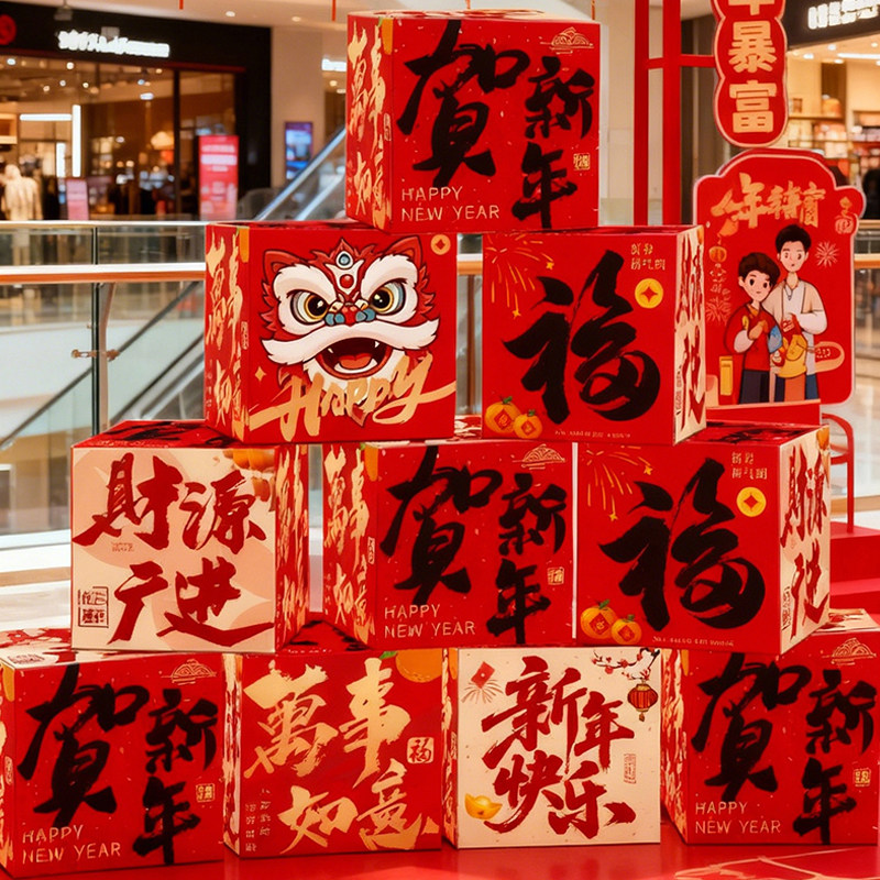 新年装饰盒子摆件2026年马年春节过年装饰品元旦商场年会场景布置