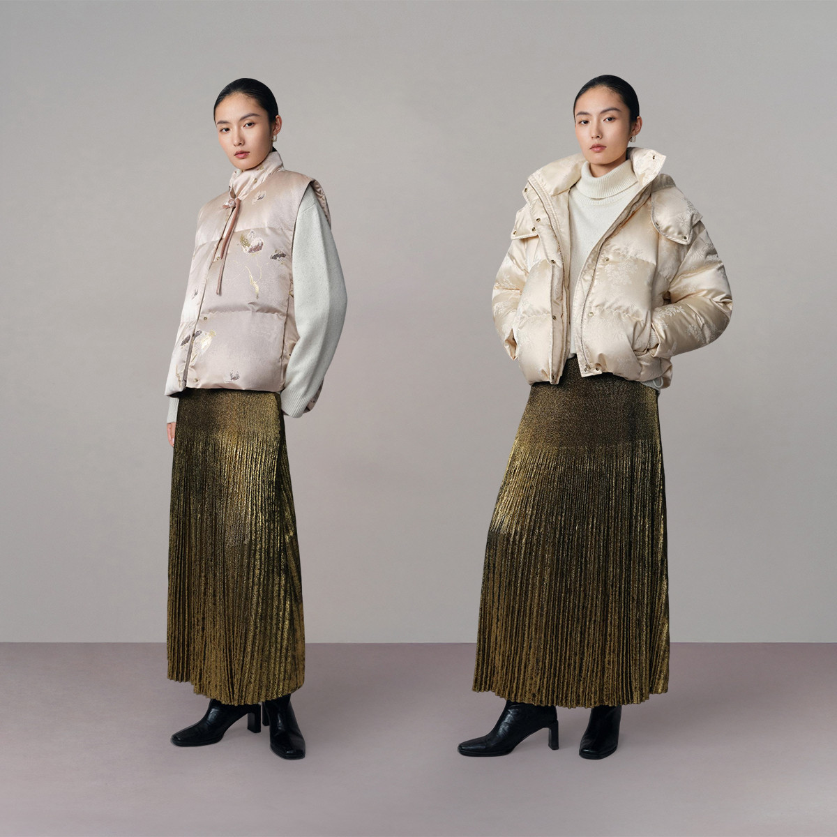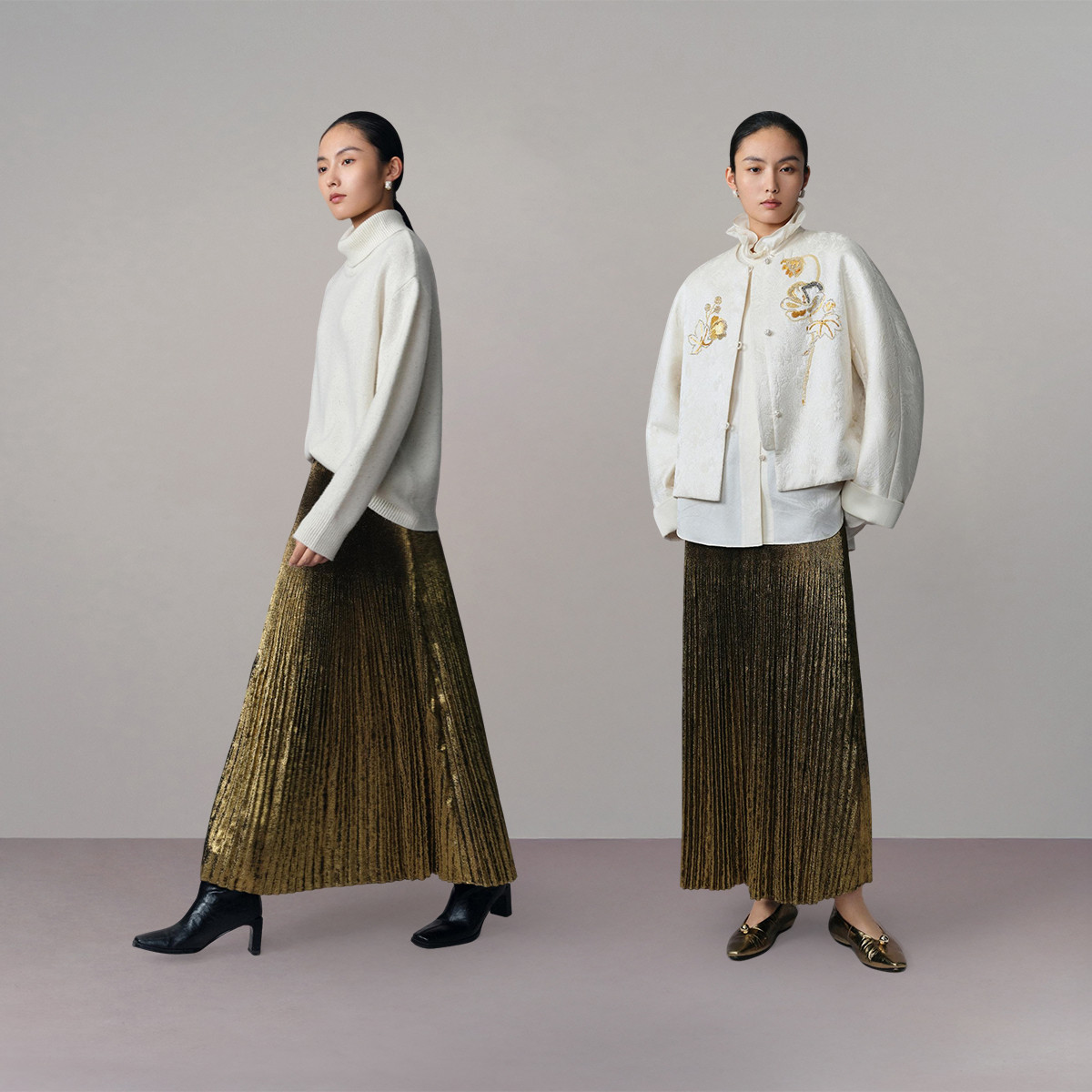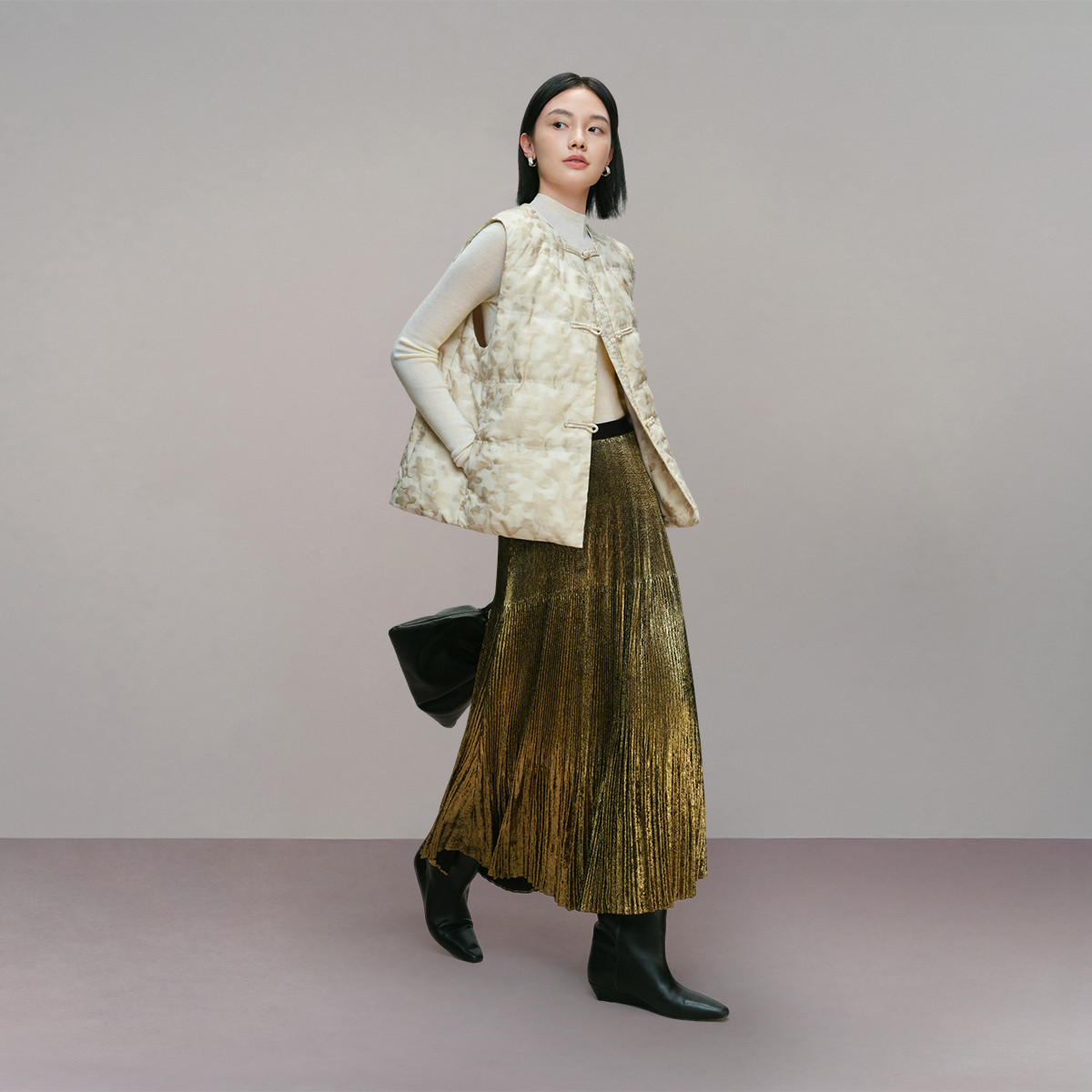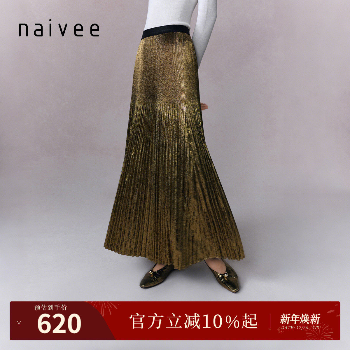 【老钱风鎏金百褶裙】naivee25冬新款高腰修身流光半身裙A字伞裙