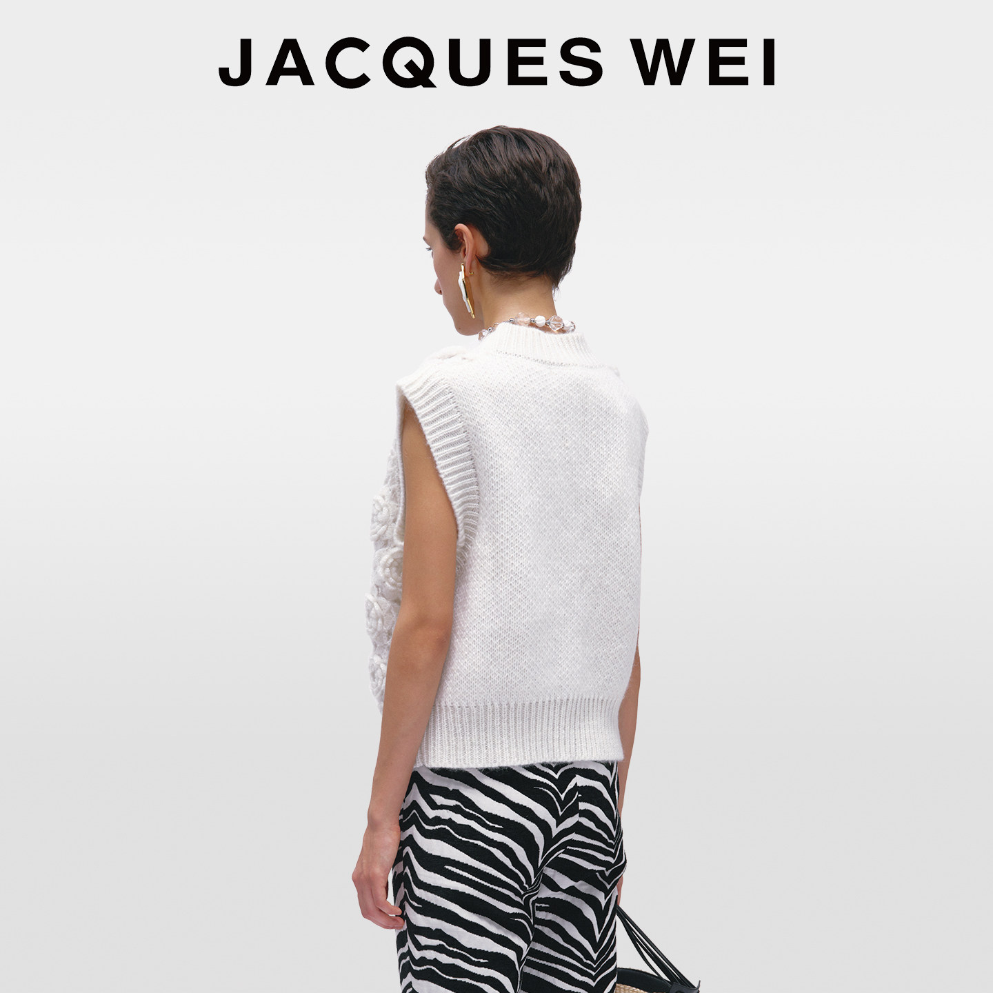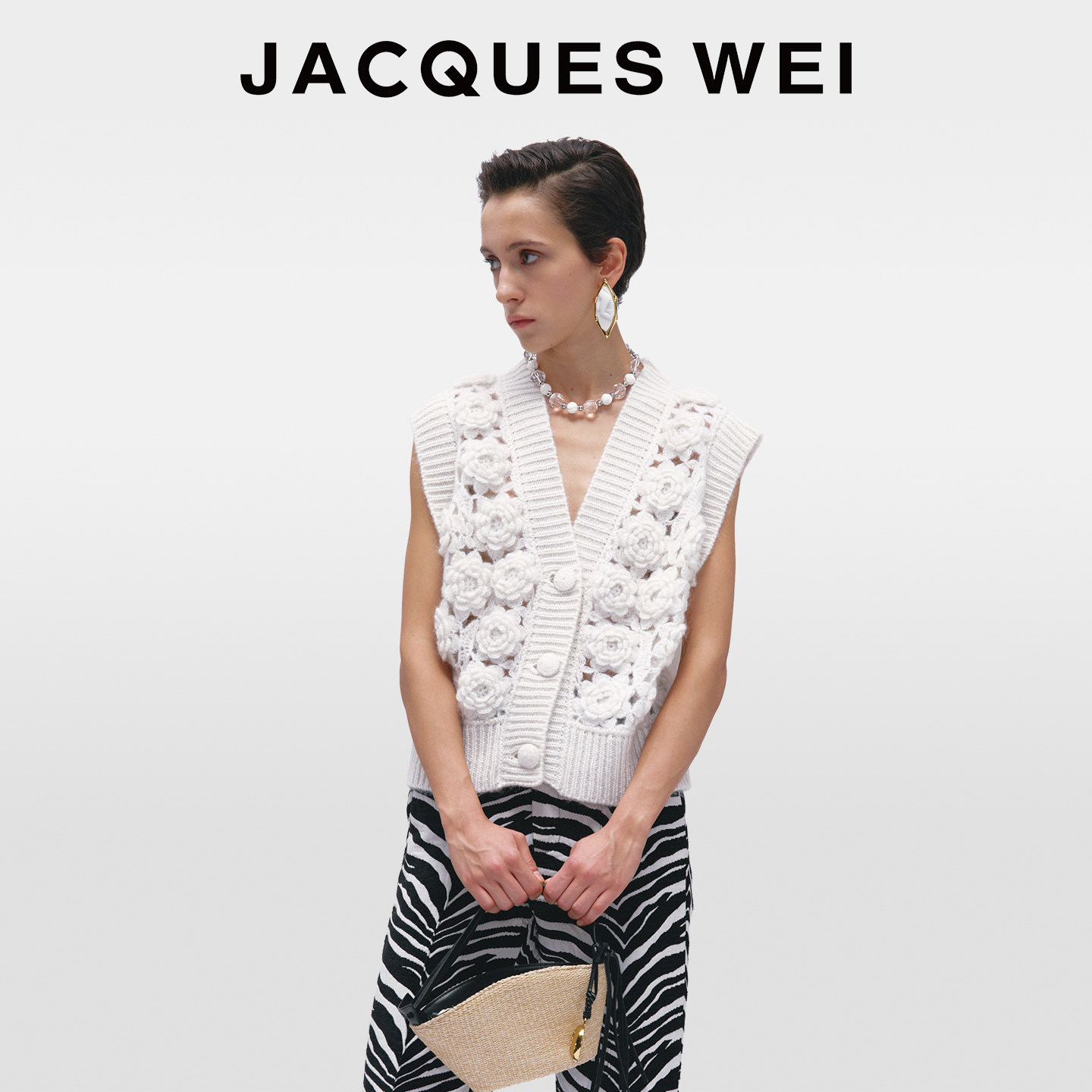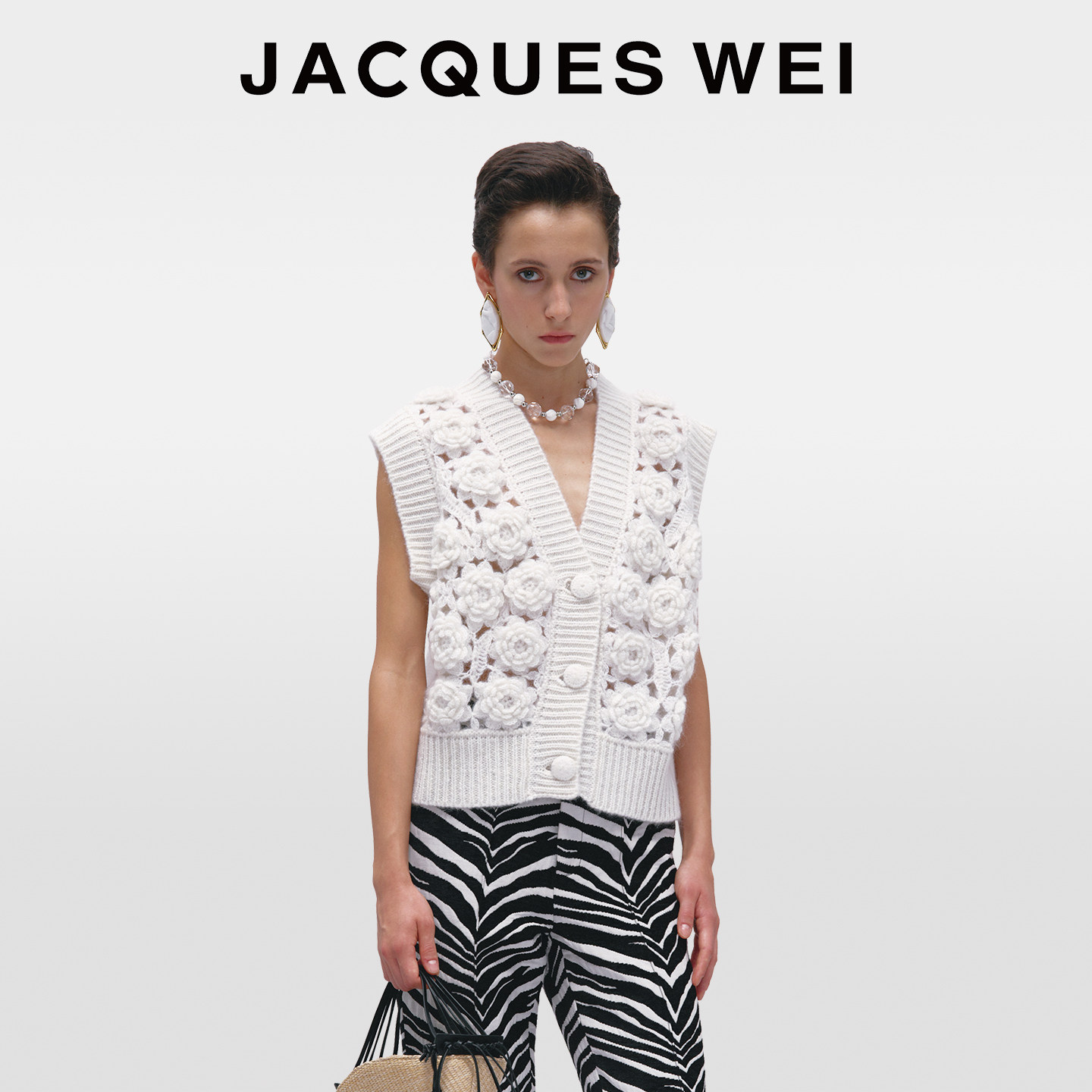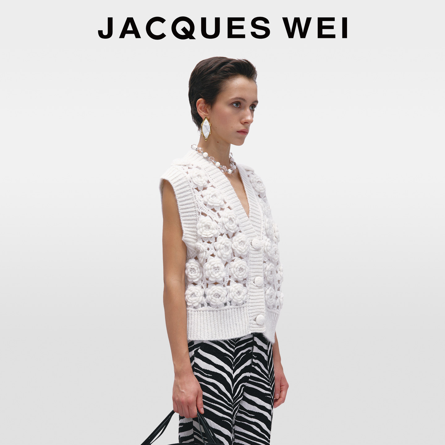 JACQUES WEI秋冬休闲通勤马海毛勾花镂空优雅羊毛针织开衫马甲女