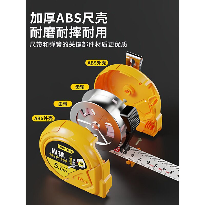 得力钢卷尺正品3米5米7米10米测量工具高精度加厚加硬木工盒尺子