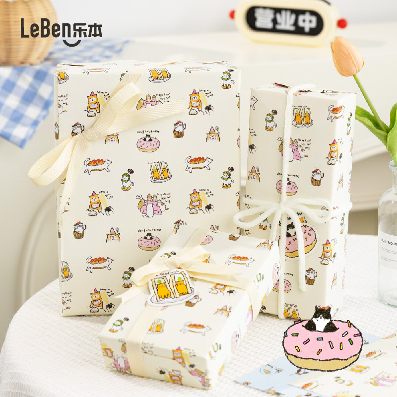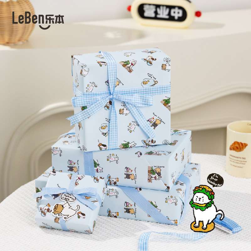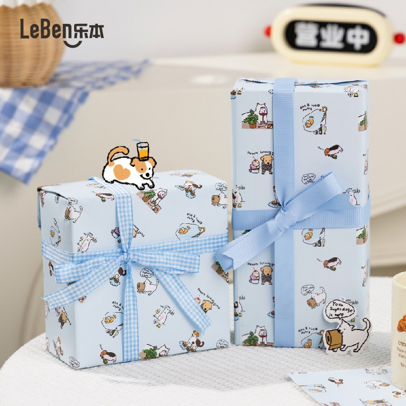 乐本·猫好狗好人坏系列礼物包装纸派对生日礼品卡通小动物生日礼盒包装包书皮纸手账素材纸花束打包纸大尺寸