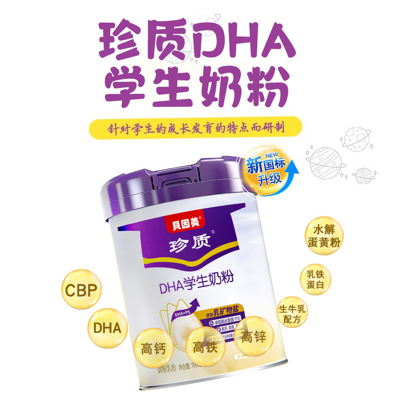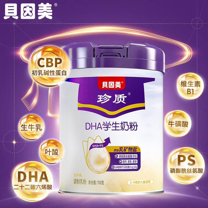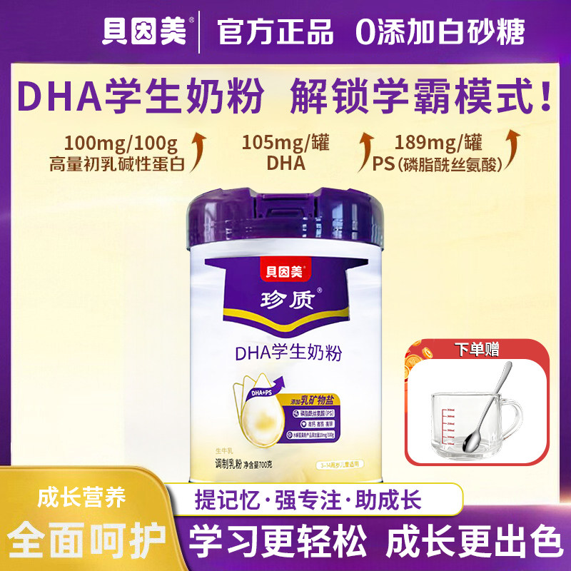 贝因美DHA学生奶粉700g罐装成长高钙高锌生牛乳配方营养牛奶粉