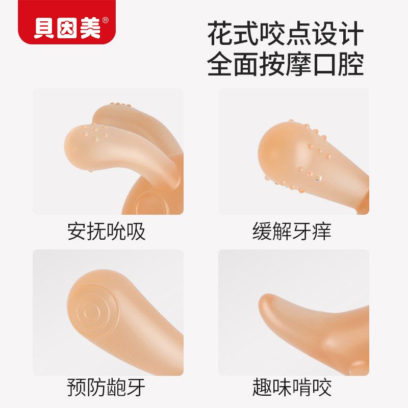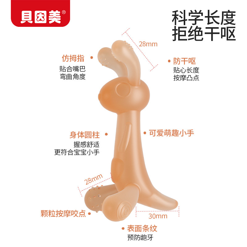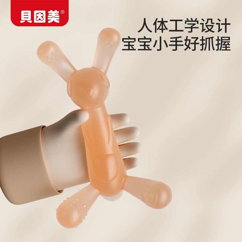 贝因美兔子牙胶宝宝小月龄出牙期硅胶玩具防吃手神器磨牙抓握安抚
