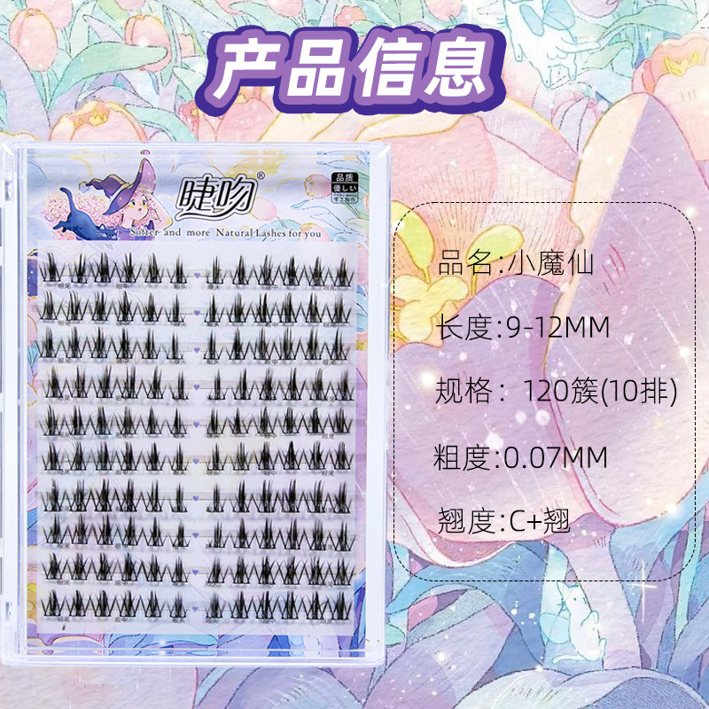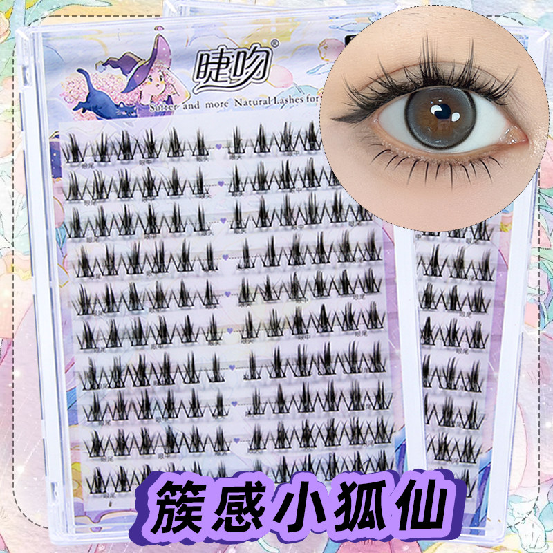 睫吻簇感小魔仙假睫毛超上镜单簇分段式懒人漫画小恶魔女自然浓密
