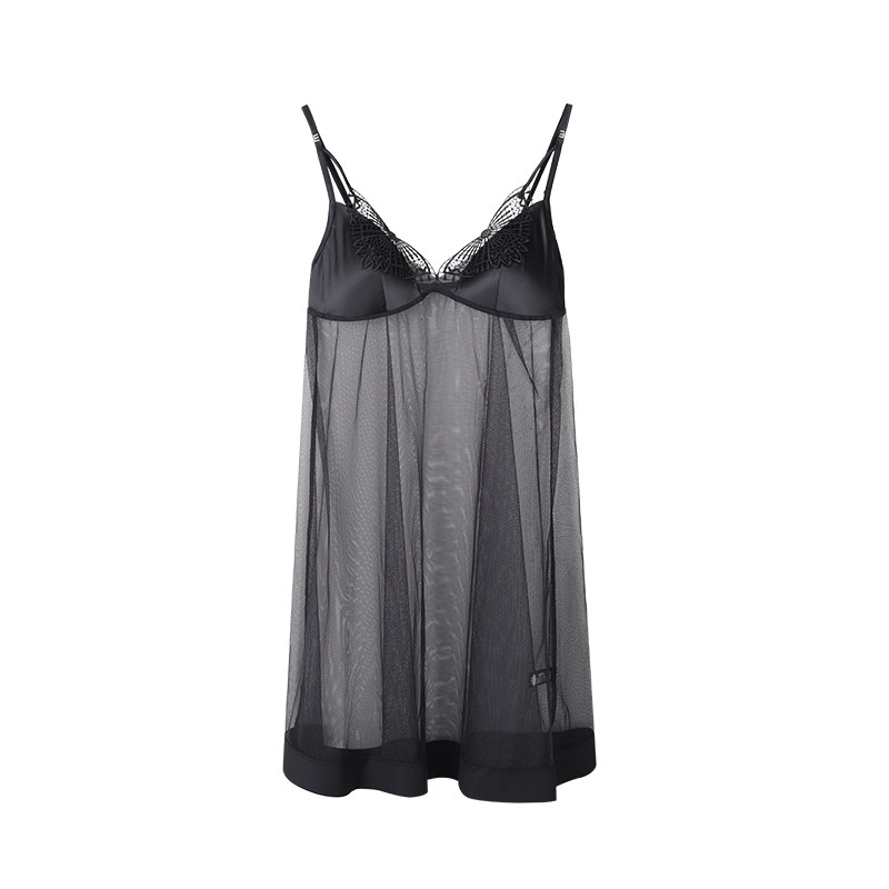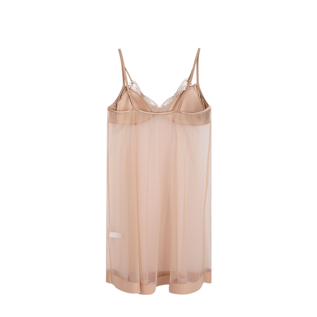 安莉芳薄款性感V领免穿罩杯吊带睡裙女美背网纱舒适家居裙EL00453