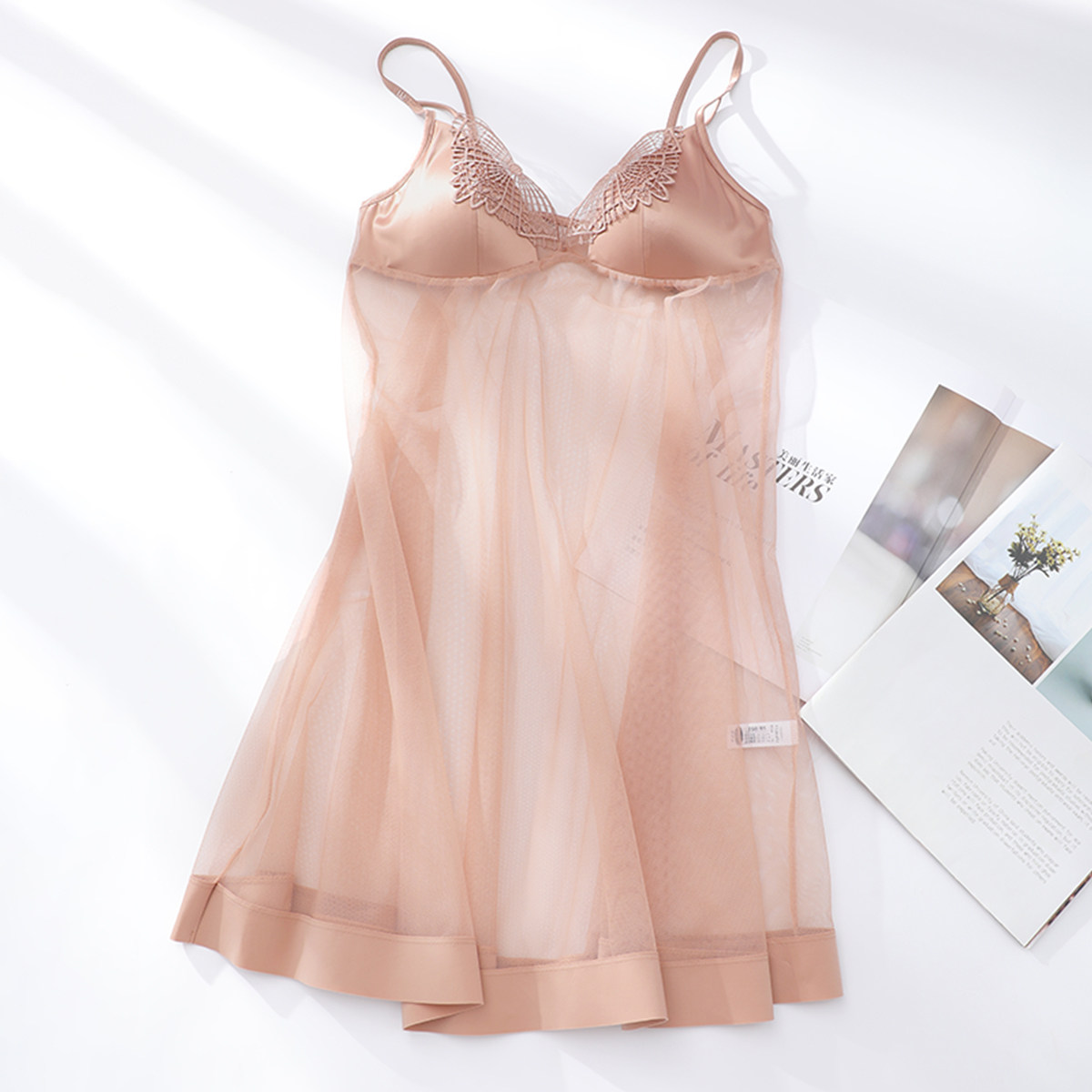 带胸垫性感睡衣女夏2025新款纯欲风冰丝蕾丝吊带裙睡裙高级感套装