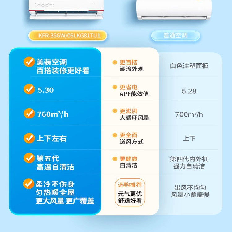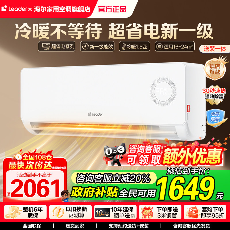 国补20%海尔智家Leader空调1.5匹1匹新一级变频挂机官方旗舰正品