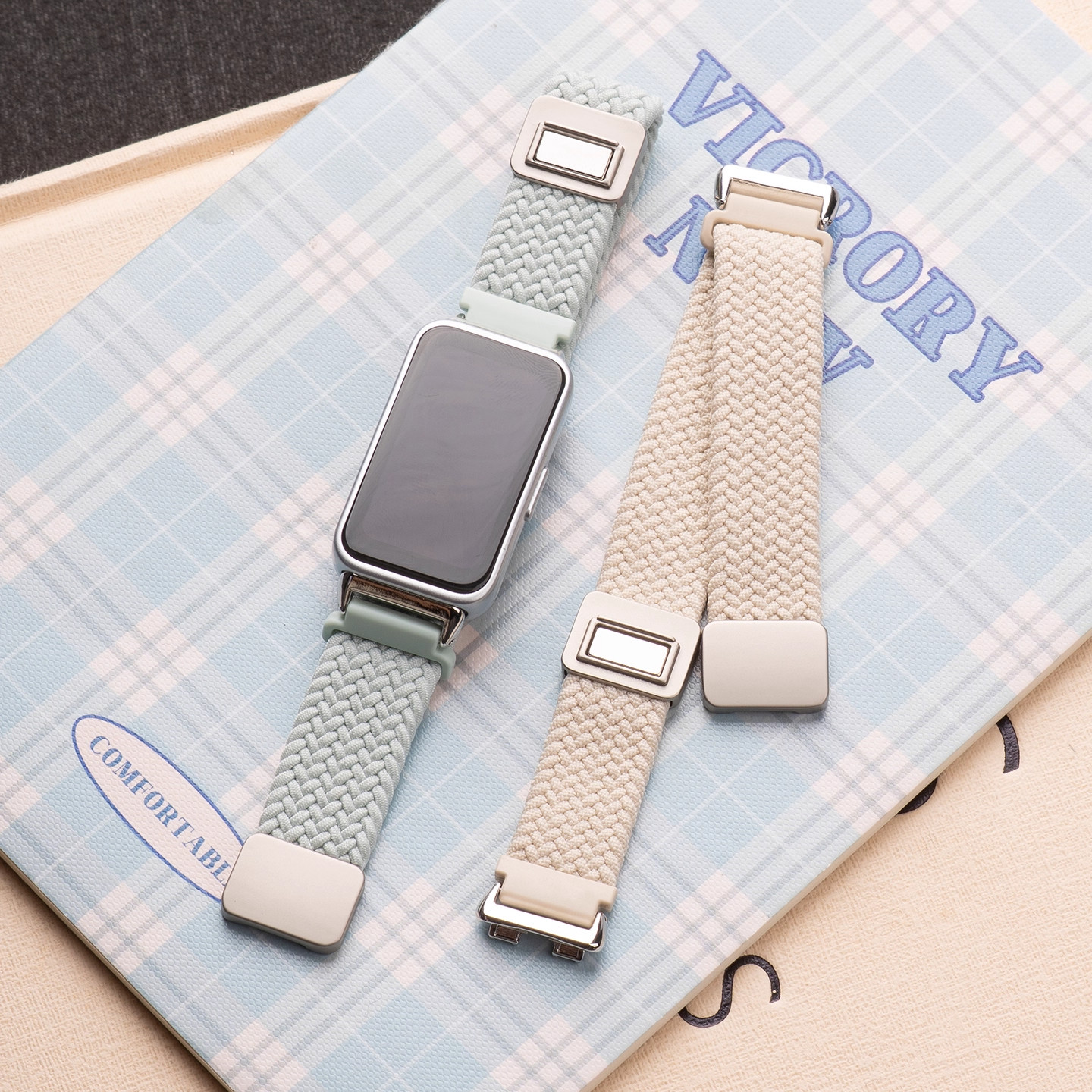 适用华为手环10表带9nfc8腕带荣耀尼龙弹力透气秋冬折叠磁吸扣编织智能运动配件红色八九十代