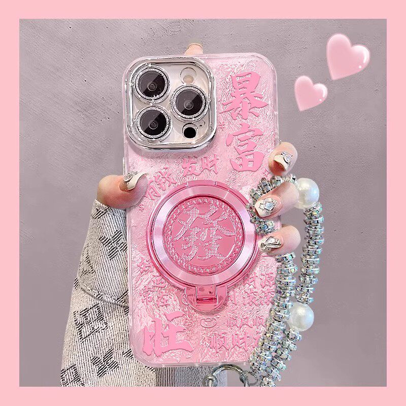 暴富發旋转支架适用苹果17/16promax手机壳女新款iPhone15plus14带手绳e摄像头全包镜头13爆款12高颜值8/7/6
