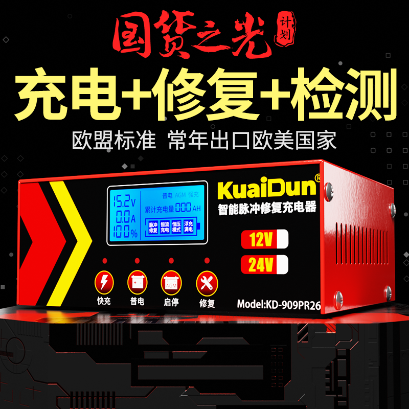 汽车电瓶充电器12v24v伏摩托车充电全智能自动修复型蓄电池充电机
