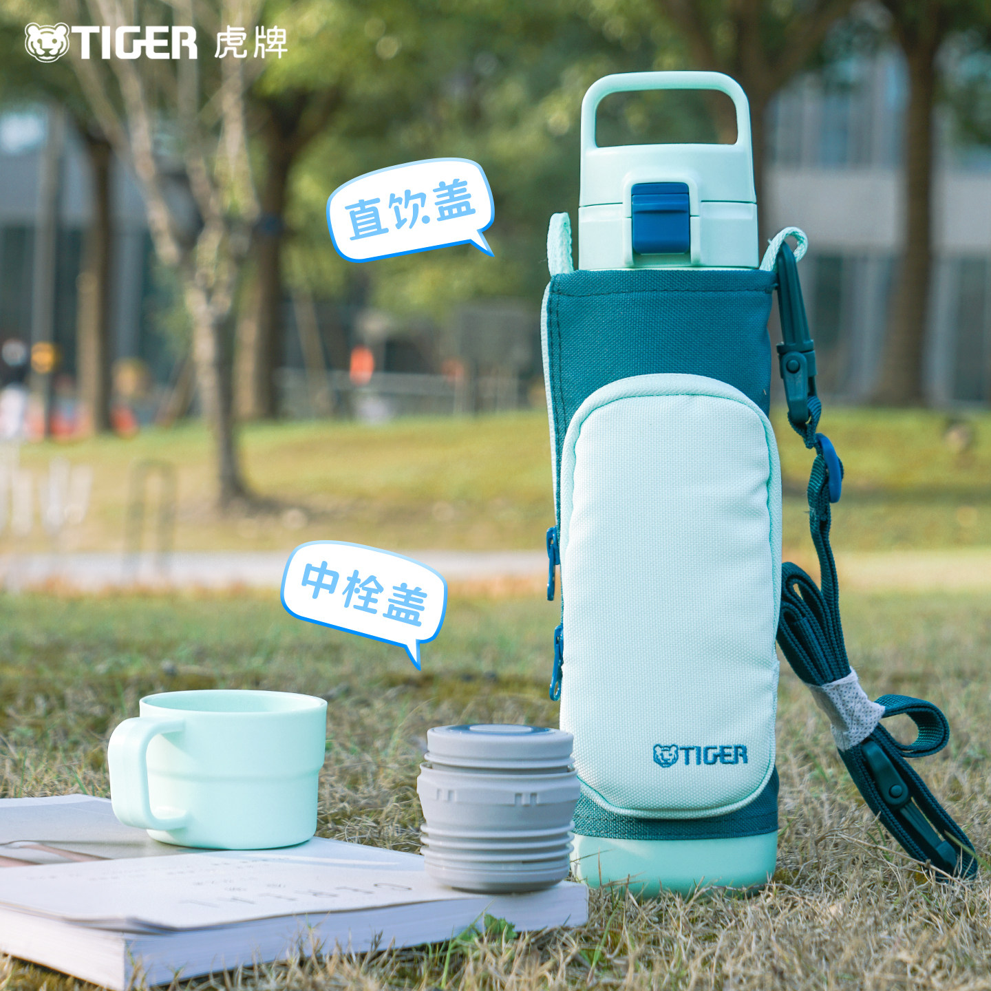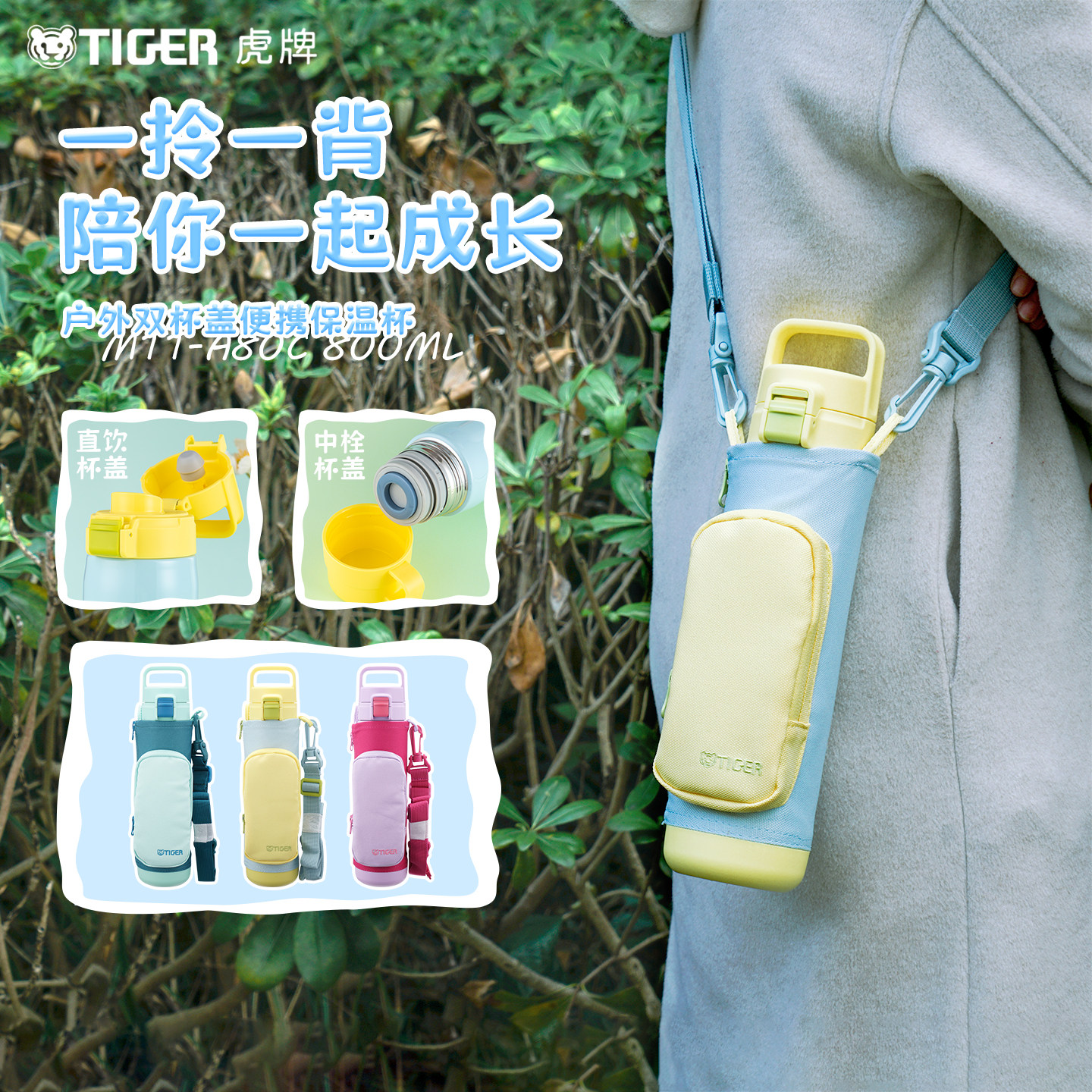 tiger虎牌儿童学生便携双盖大容量保温杯水壶女包包水杯MTT-A