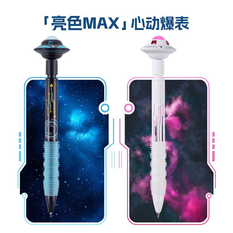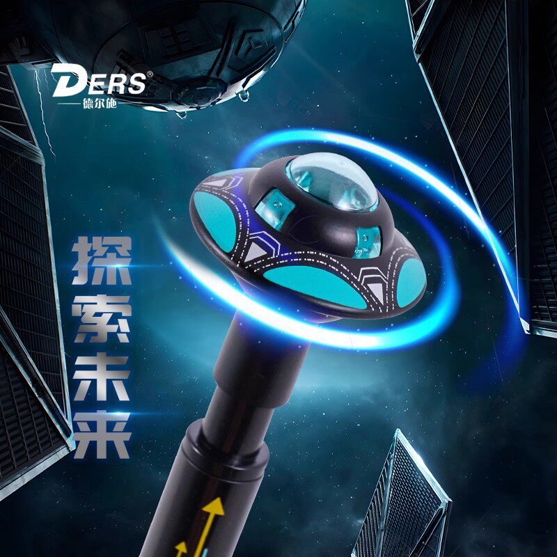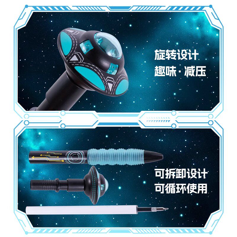 德尔施/DERS星际漫游者中性笔黑芯按动款高颜值解压飞碟笔学生创意大容量0.5时尚炫酷陀螺飞盘笔UFO旋转水笔