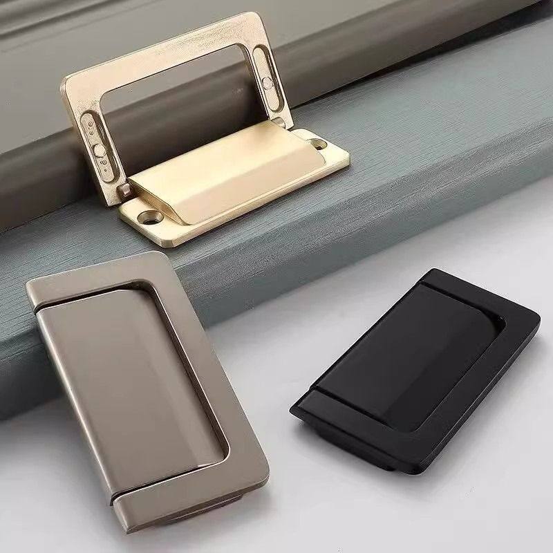 免打孔衣柜抽屉隐形暗拉手平隐藏现代简约床头柜暗扣柜子拉环把手