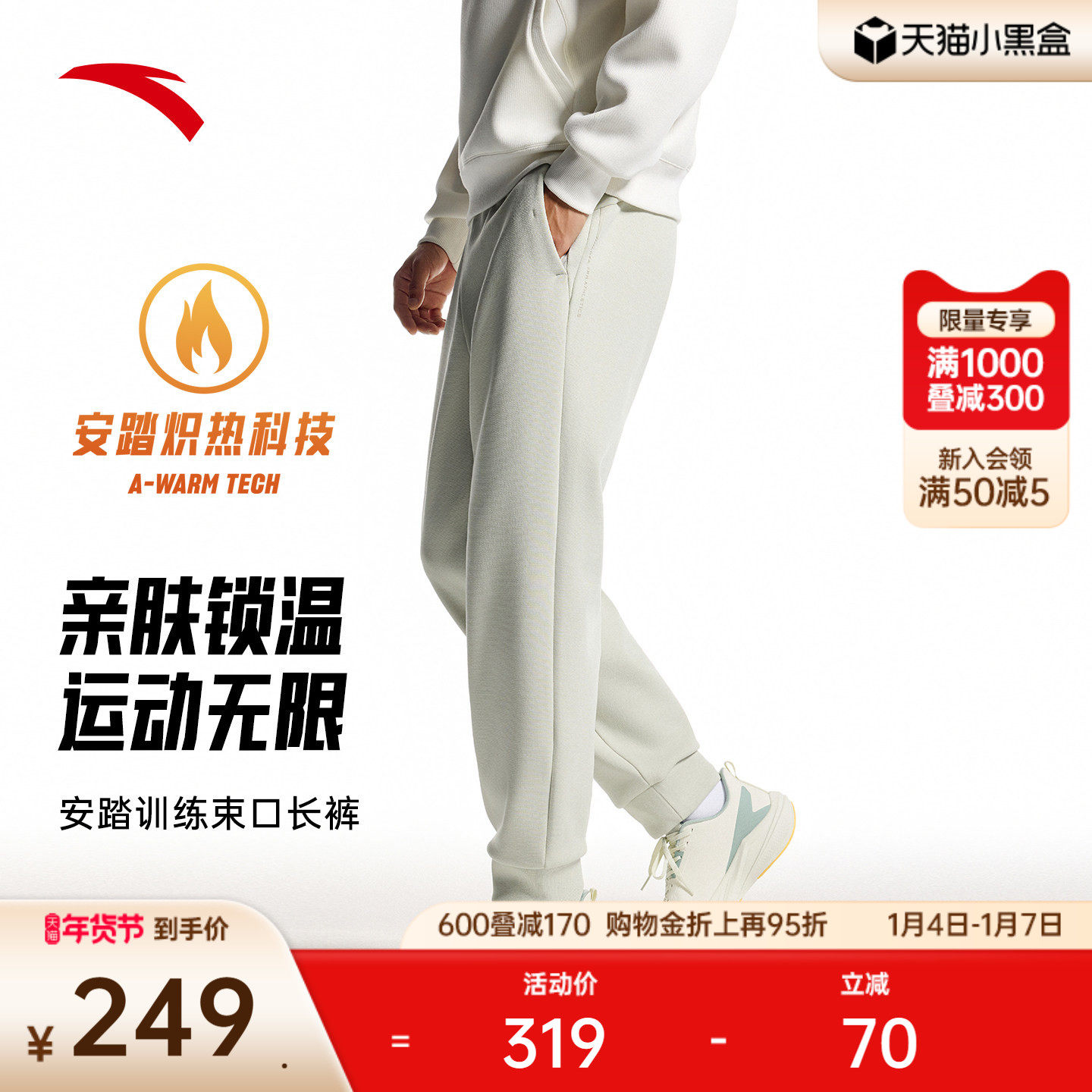 安踏自在裤丨针织运动长裤男冬季加绒保暖卫裤跑步裤子152547306N