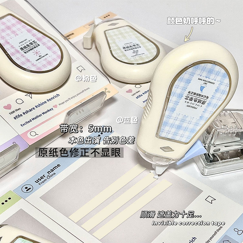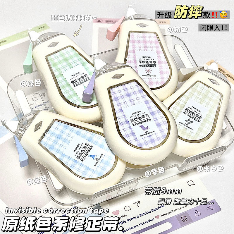 小红书推荐原色纸顺滑修正带隐形高颜值涂改大容量ins静音改正简约学霸同款学生专用紫色白色绿色蓝色粉色