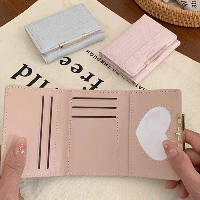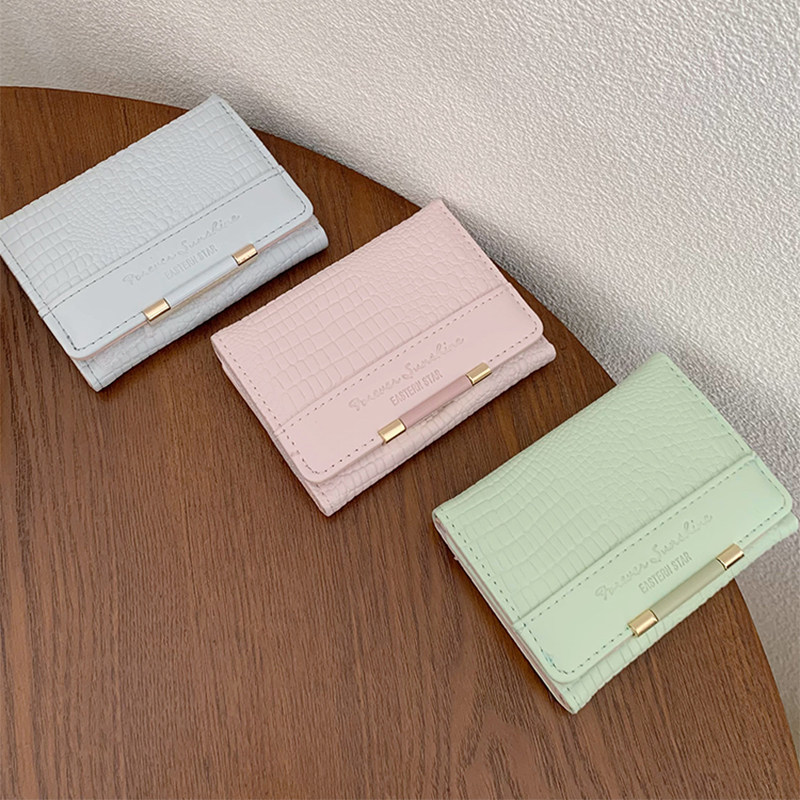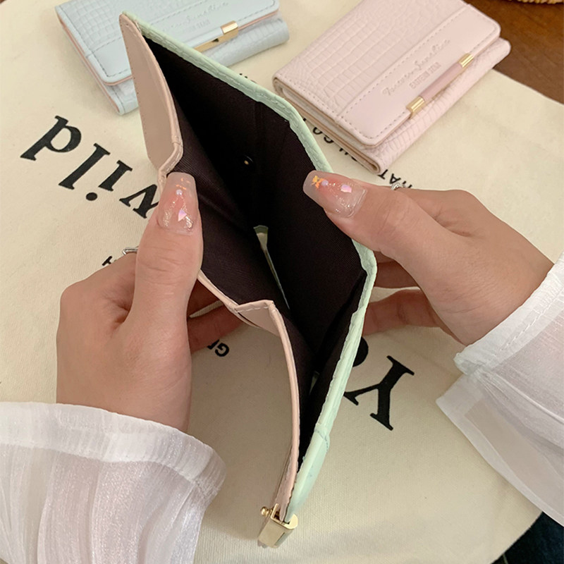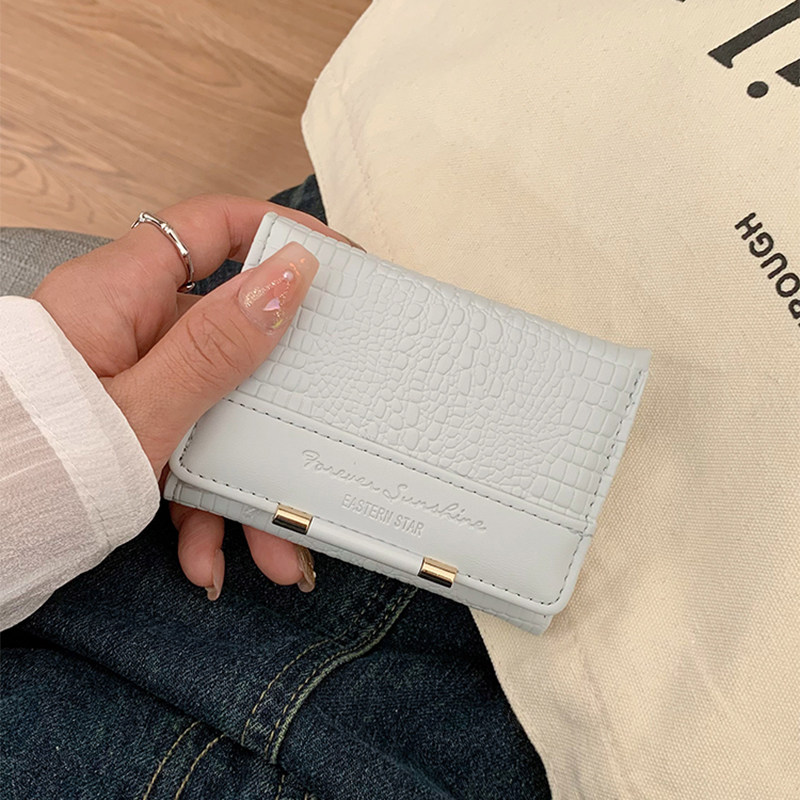高颜值鳄鱼纹钱包女式小众经典折叠钱夹时尚精致多卡位短款零钱包