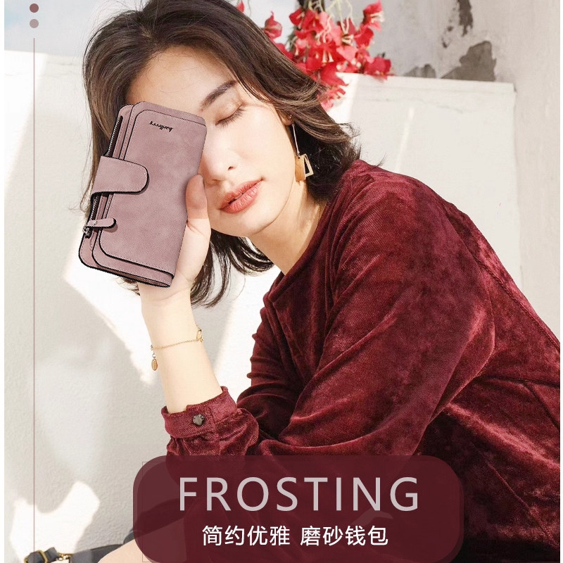 卡包女高档软皮磨砂长款钱包大容量多卡位折叠卡包钱夹一体包女