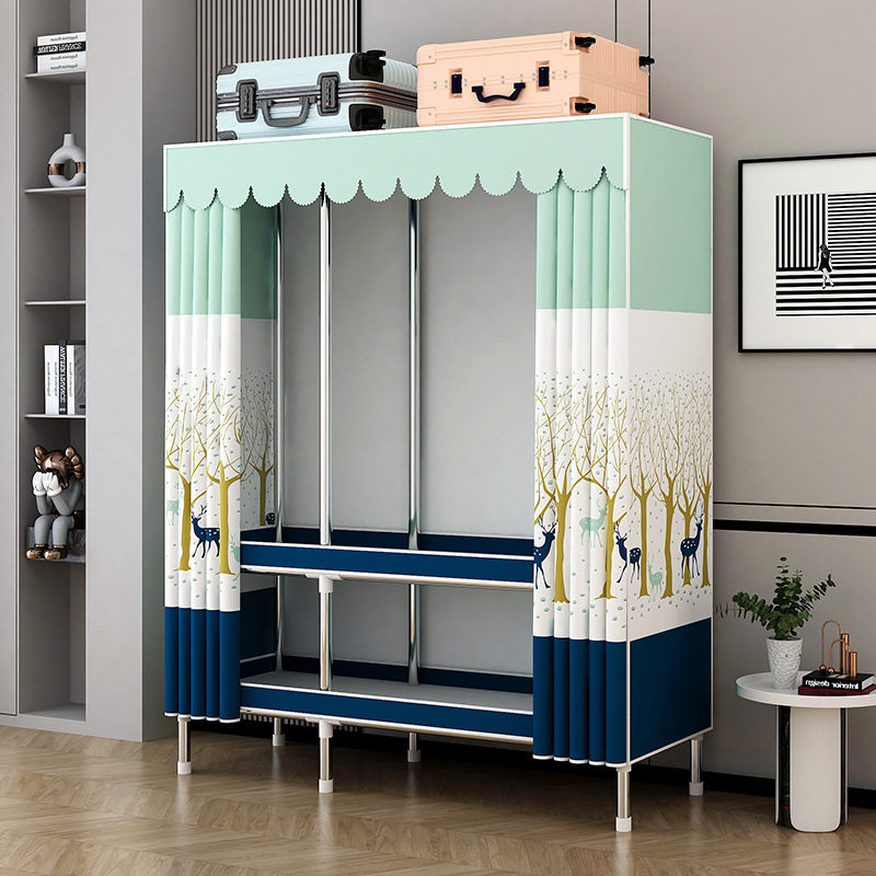 衣柜家用卧室出租房用简易组装全钢架加粗加厚小户型布衣柜经济型