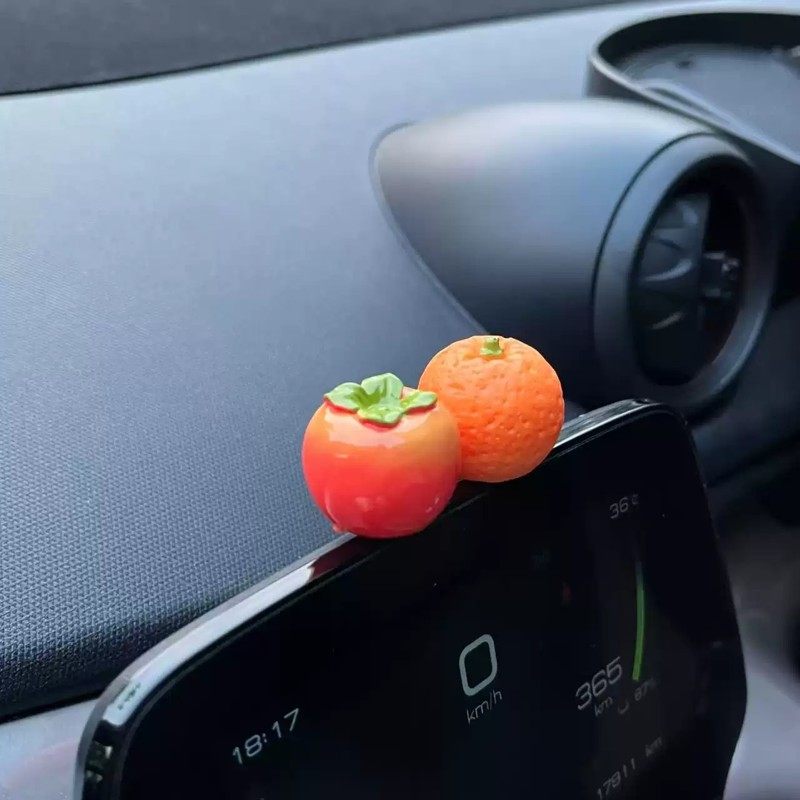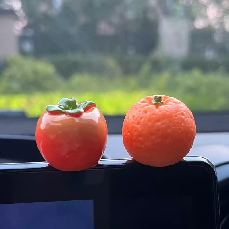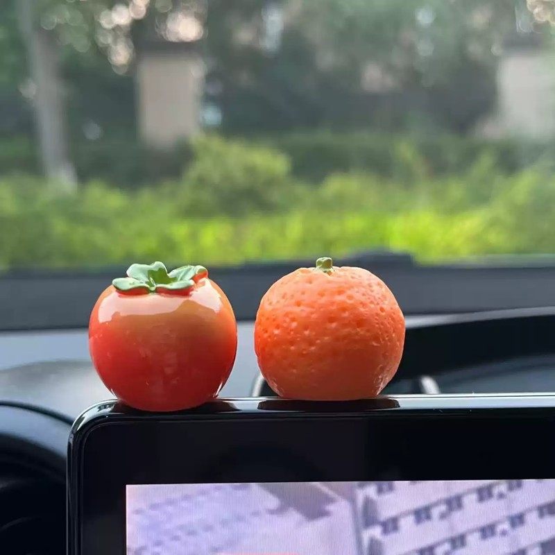 心想事成汽车中控台摆件可爱柿子小橙子屏幕车内装饰品创意礼物