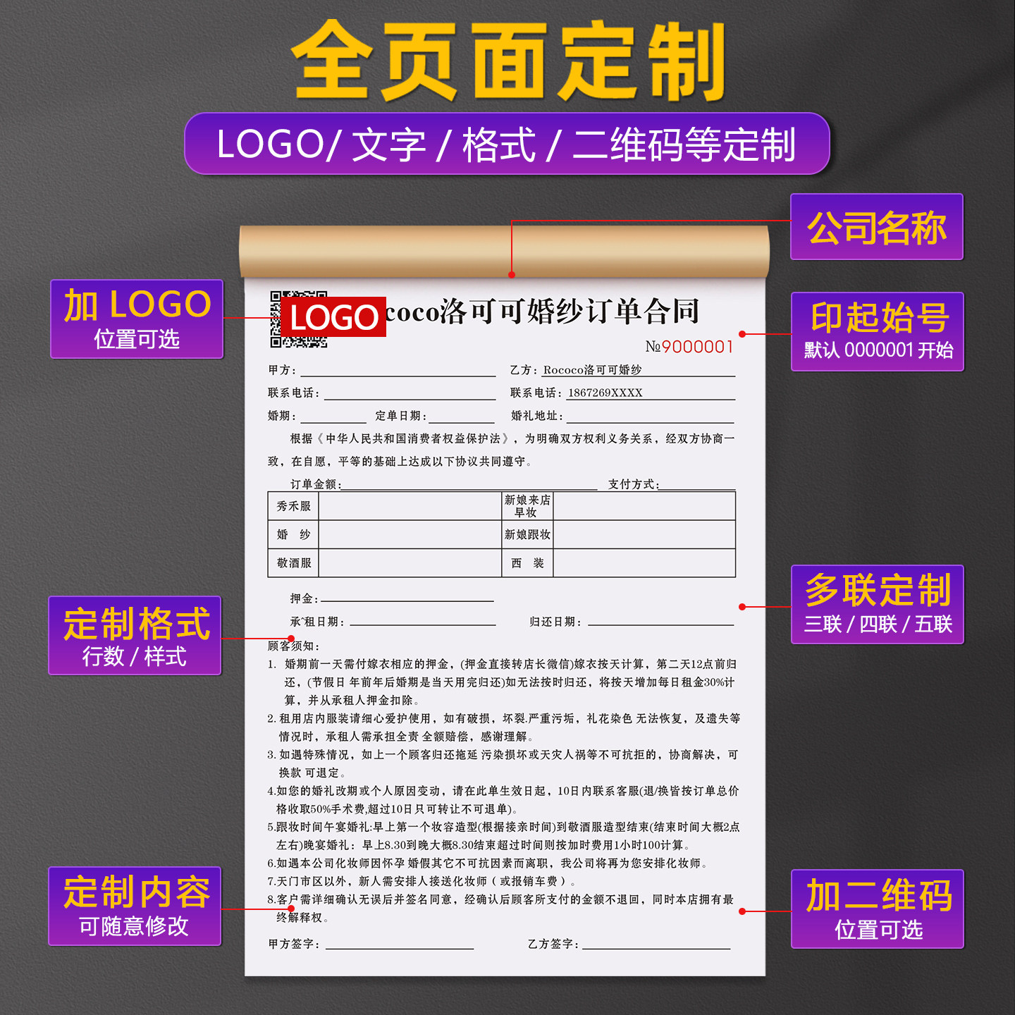 【洛可可婚纱摄影单】定制二联礼服馆服装租赁租凭合约婚礼策划服务合同工作室拍摄押金收据新人预约拍照单据