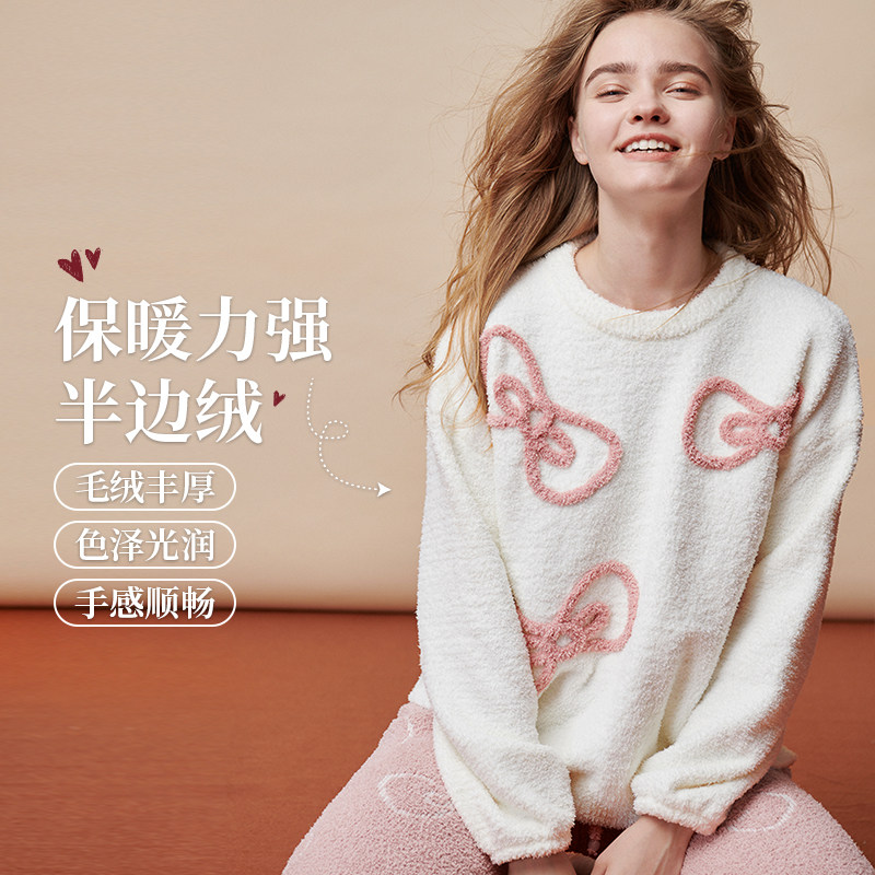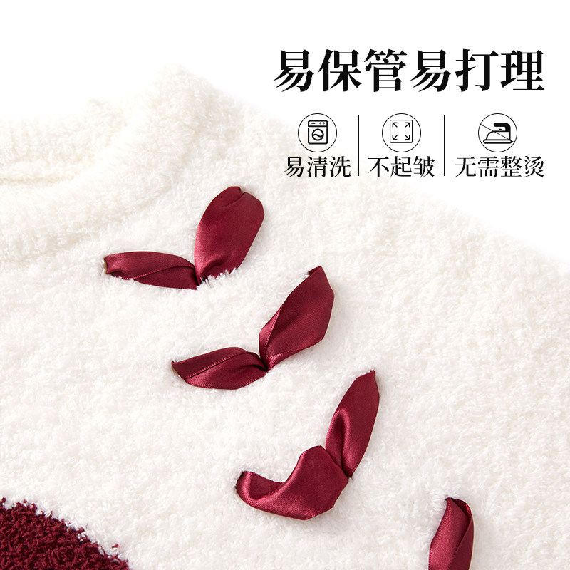 夏娃的诱惑睡衣女秋冬保暖珊瑚绒睡裙加绒加厚家居服两件套装冬季
