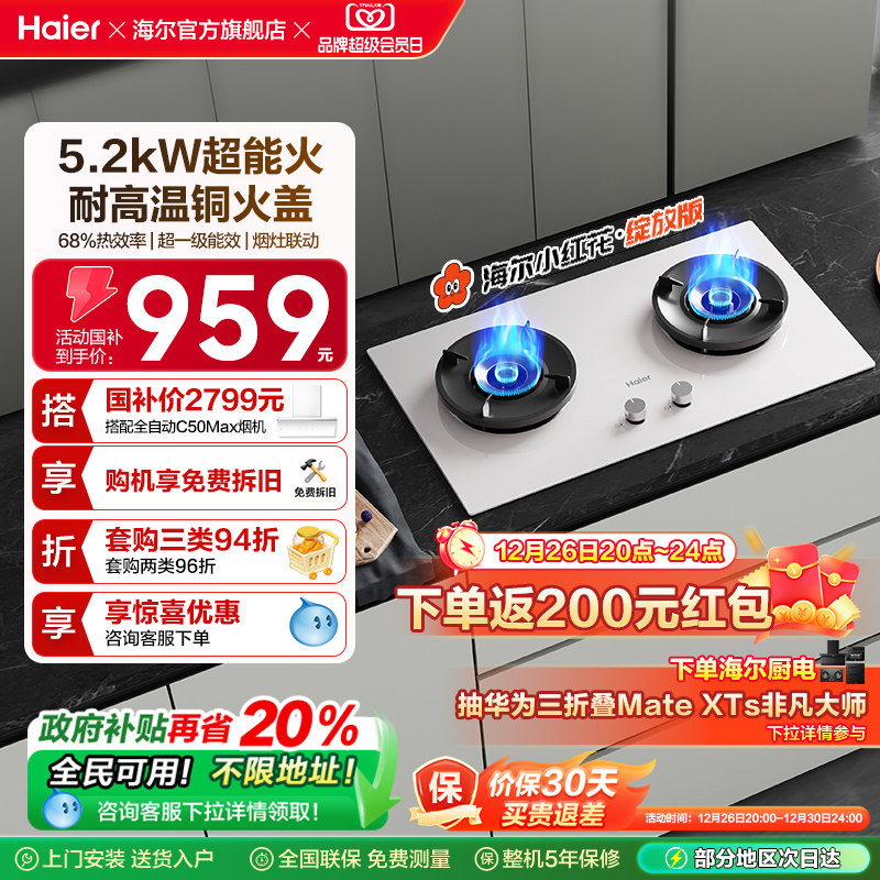 海尔小红花超能火燃气灶天然气煤气灶家用双猛火灶台Q2BEC