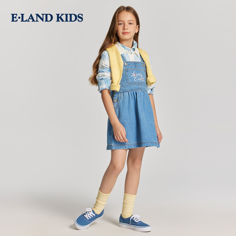 【100%棉】eland kids衣恋童装女童背带裙26年夏季新品复古牛仔裙
