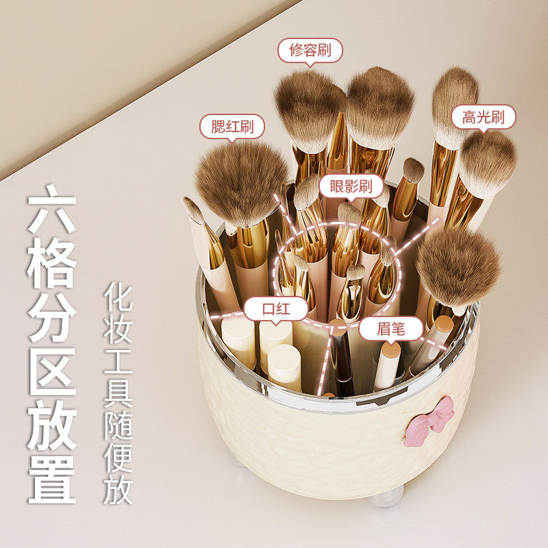 化妆刷收纳筒旋转防尘带盖子桌面化妆台收纳盒口红眼影刷化妆刷笔