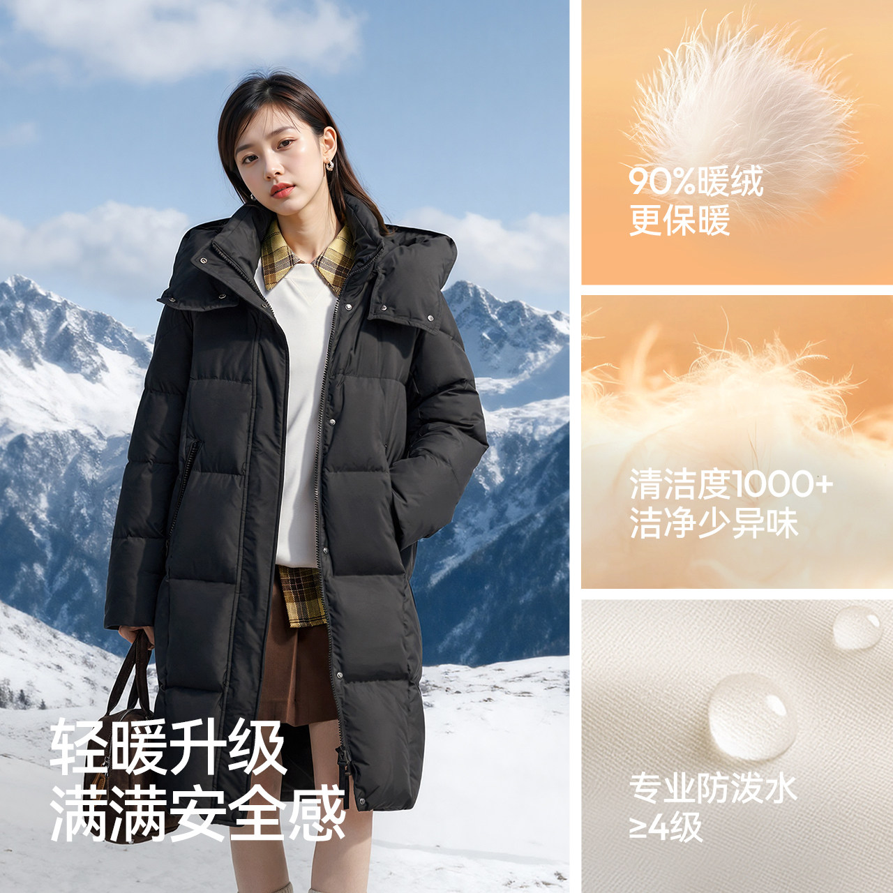 陈都灵|轻松|森马羽绒服女冬季长款90绒子防泼水可拆卸帽保暖外套