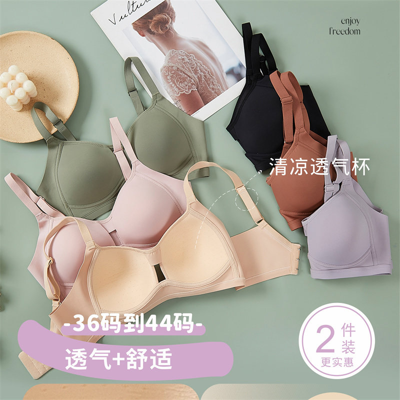 薄款内衣女大胸显小透气夏季薄杯聚拢大码无痕文胸肤色固定罩杯