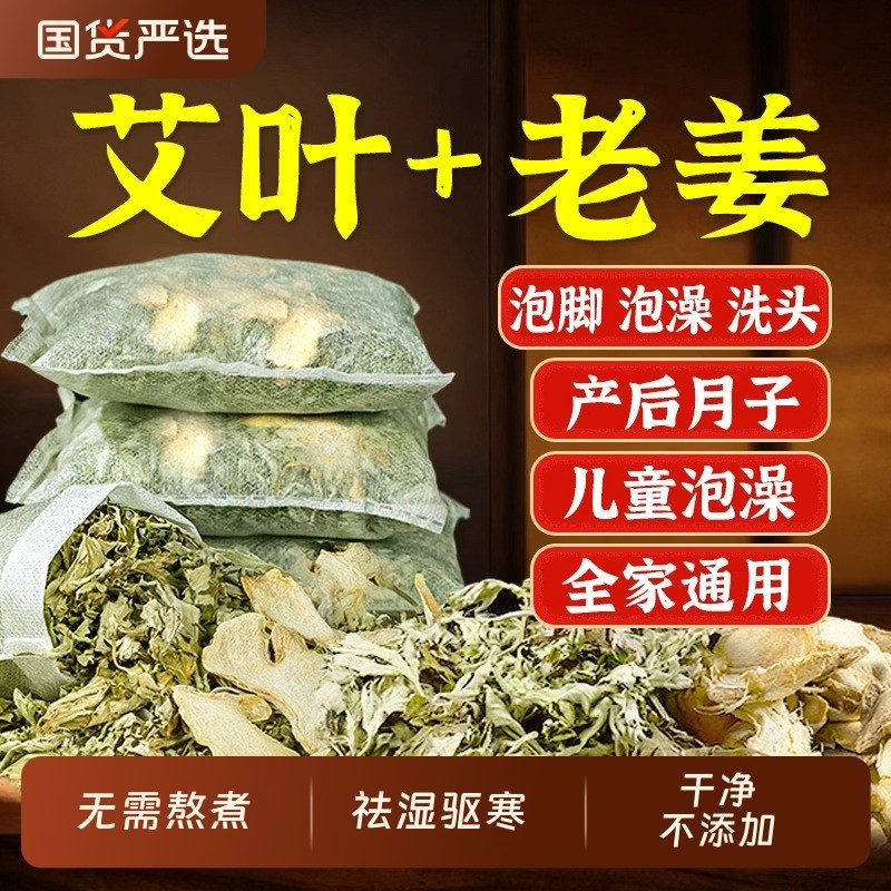 艾草艾叶花椒生姜片艾灸泡脚药包老姜足浴包坐月子泡洗澡药浴包