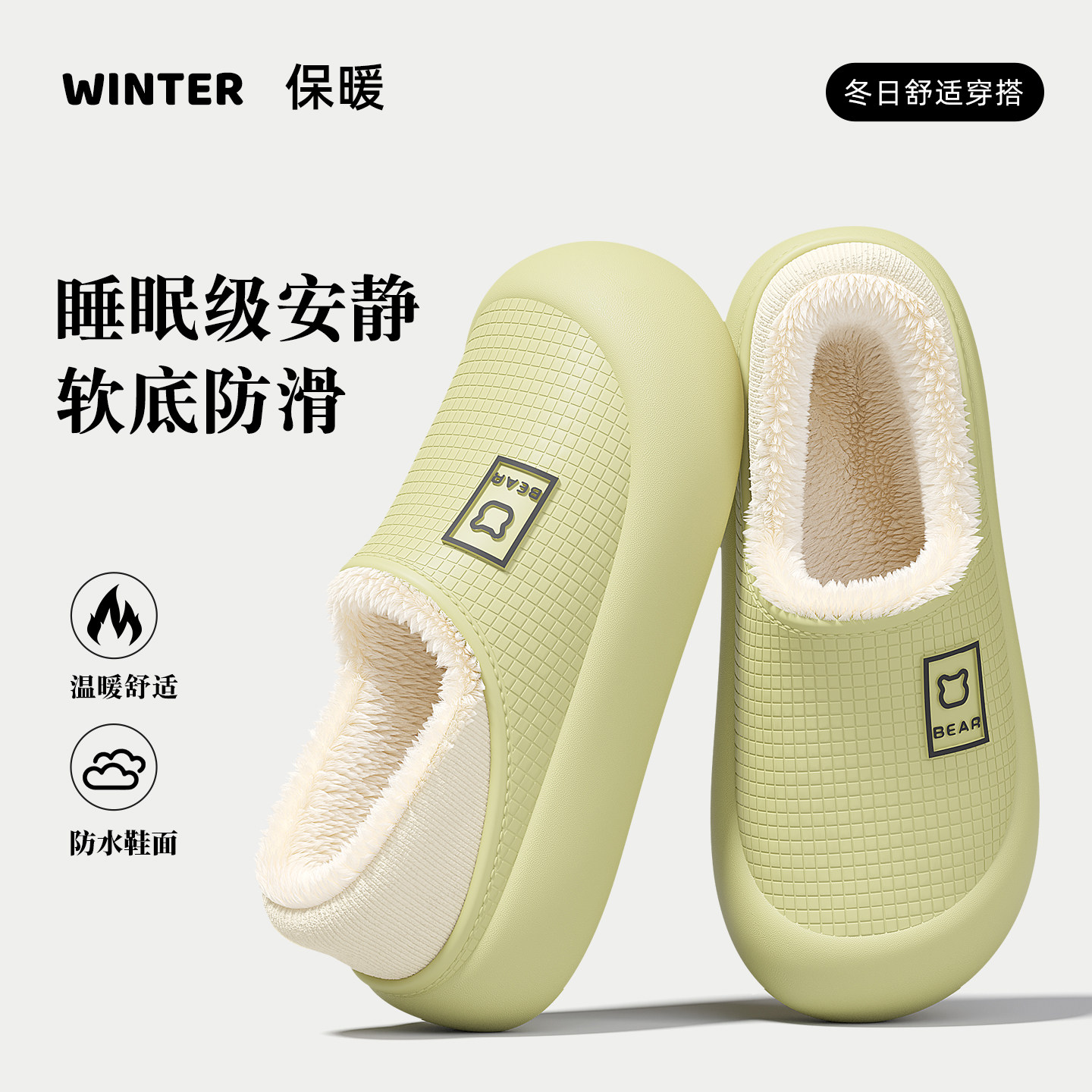 朴西棉拖鞋女士秋冬季厚底简约保暖室内居家用软底防滑情侣棉拖男