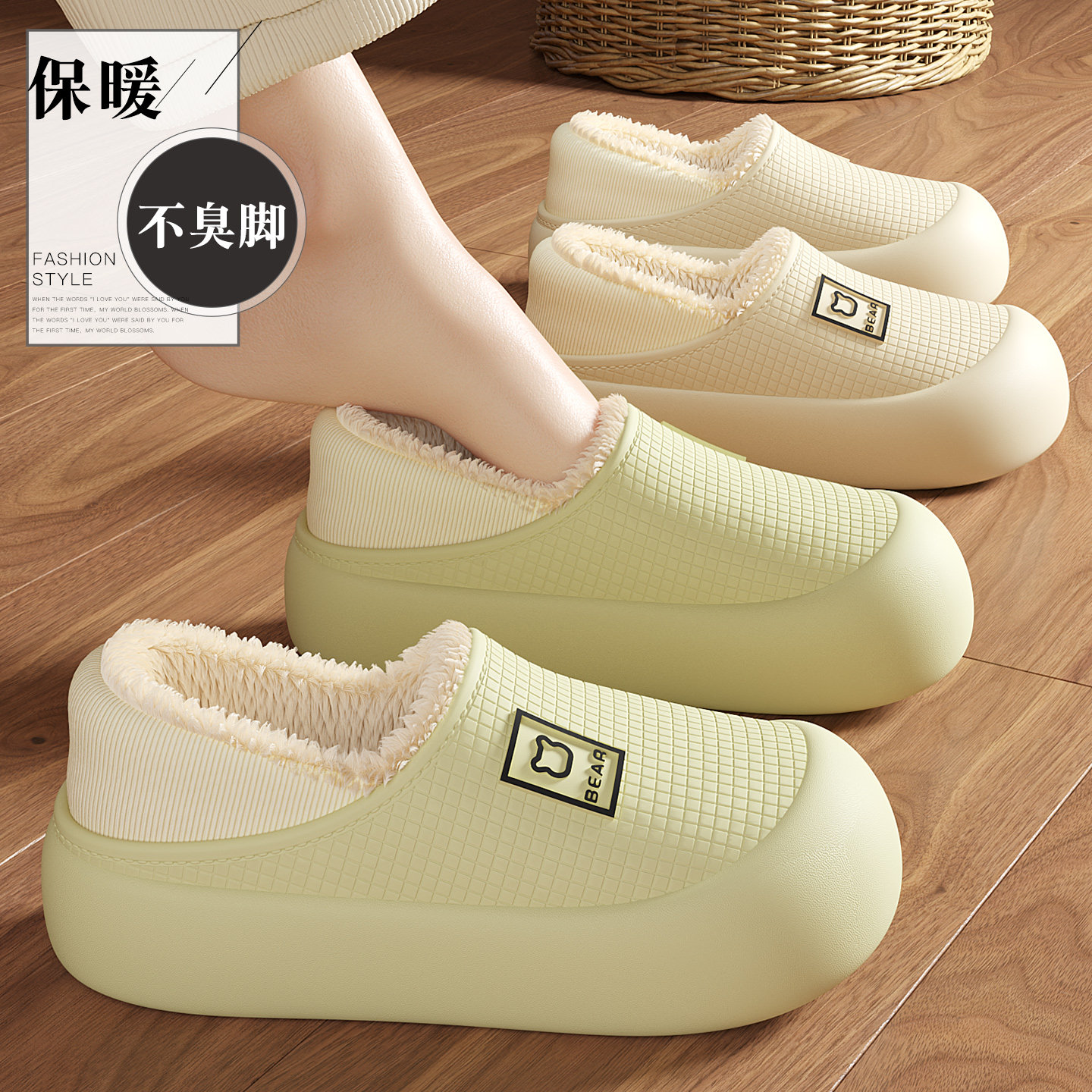 亚束棉拖鞋男士破茧外穿厚底增高情侣大码室内居家冬季保暖女新款