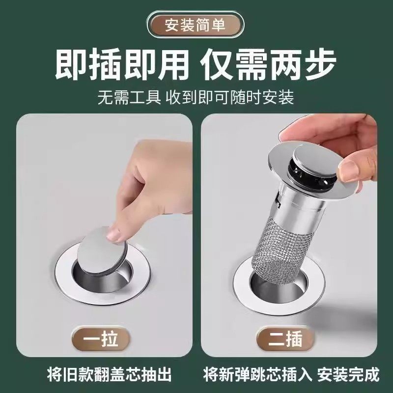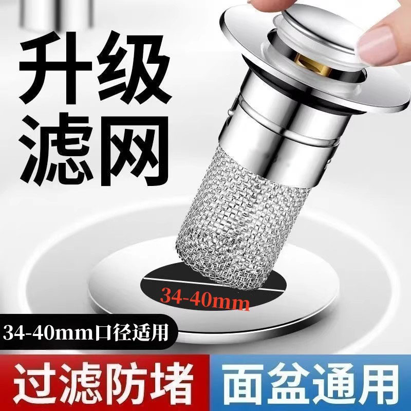 洗脸盆漏水塞洗面盆弹跳芯下水器防臭防堵洗手池过滤按压滤网排水