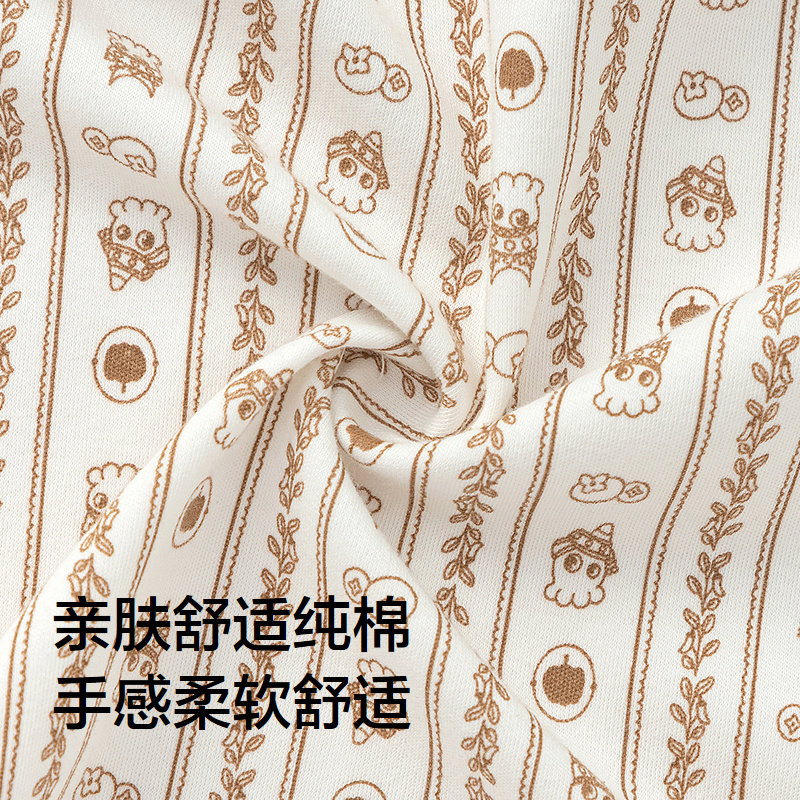 小猪大卫新生儿秋季保暖连体衣男女宝宝卡通印花中开夹棉爬服