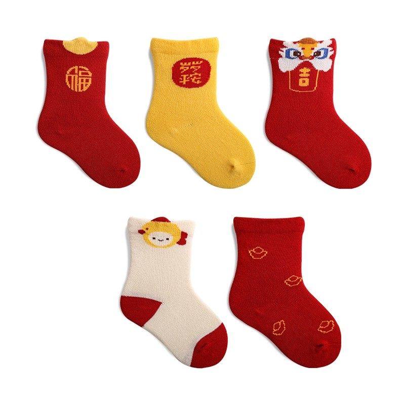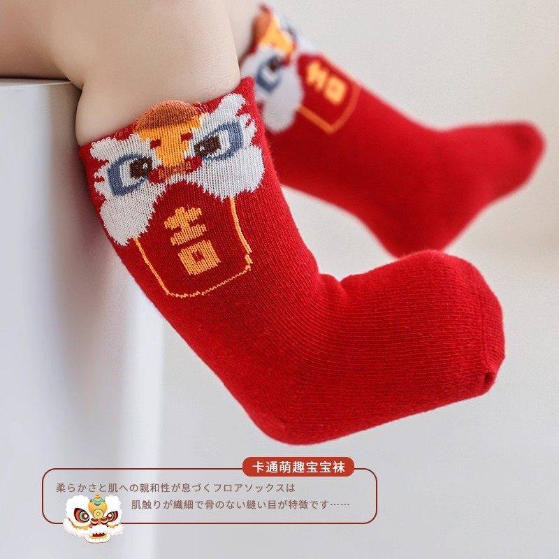 婴儿红色袜子新年春秋冬季男女小孩新生儿满月宝宝周岁过年大红袜