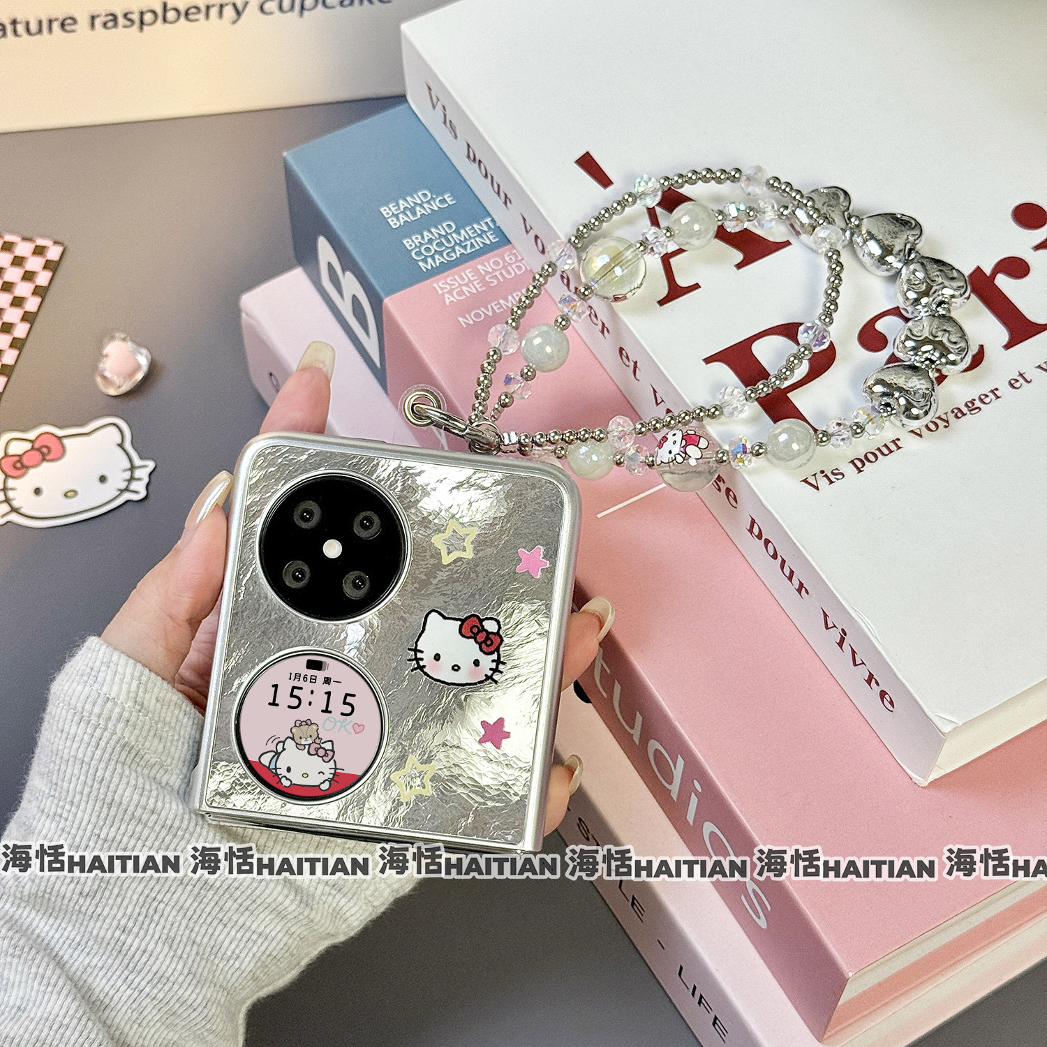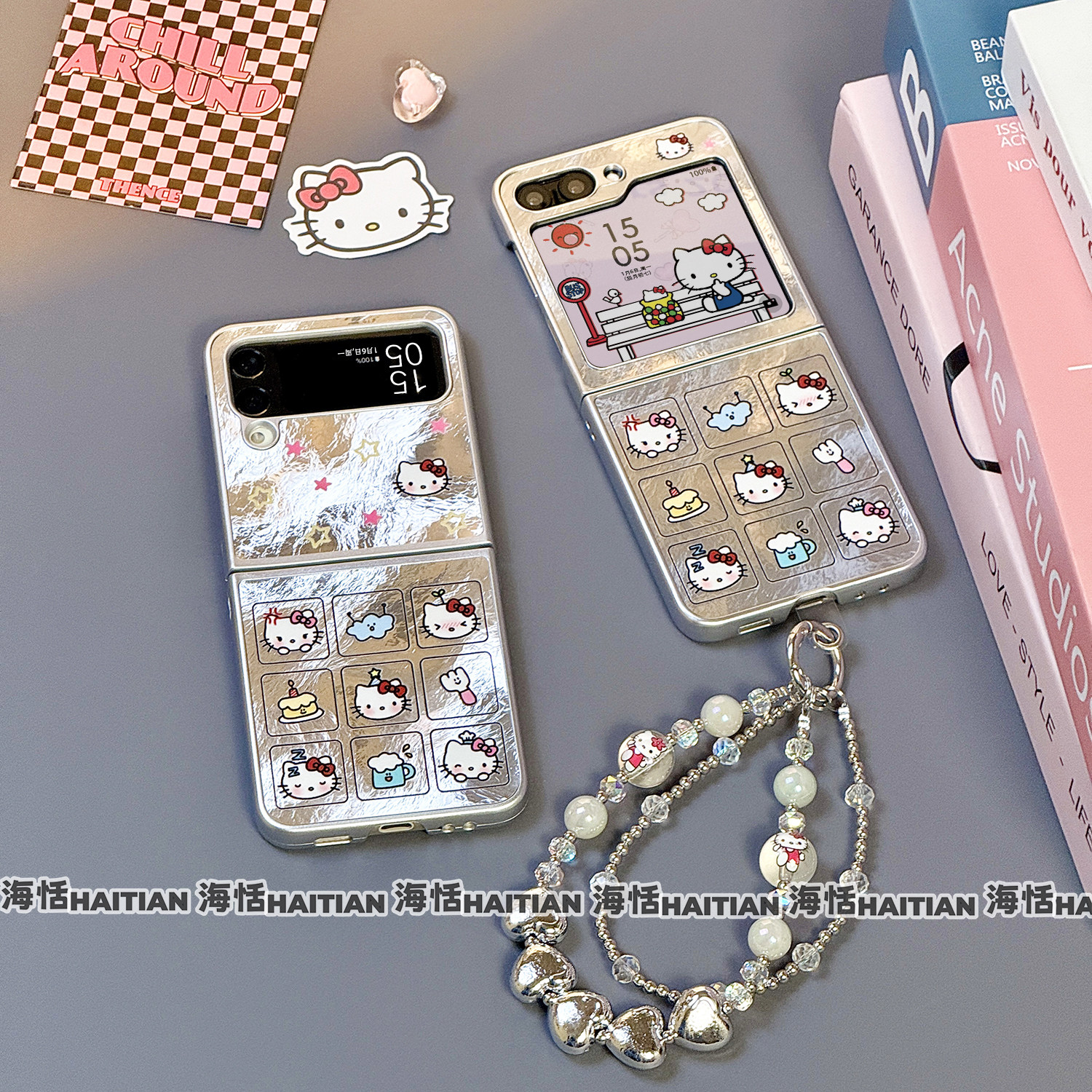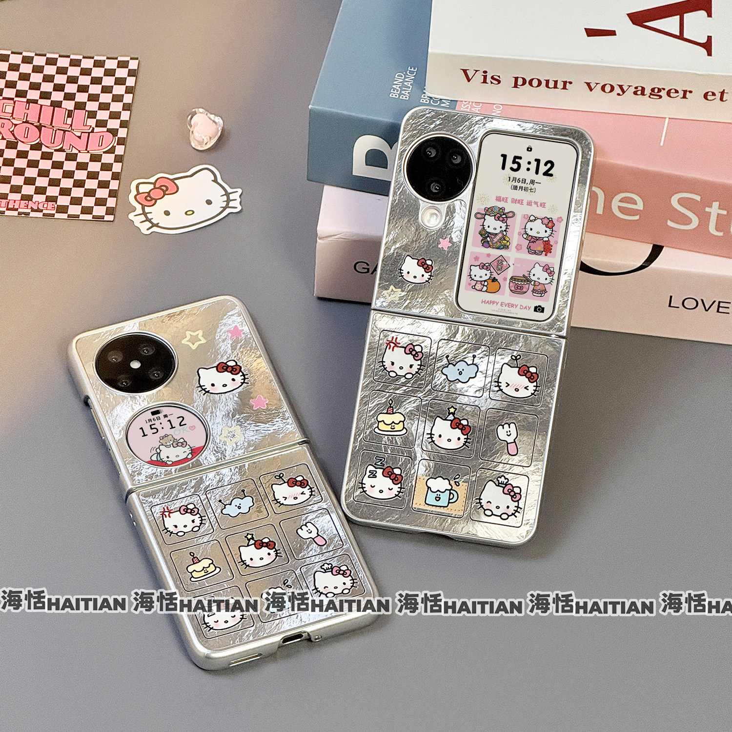 海恬 冰川卡通kitty适用三星zflip7fe折叠屏purax手机壳novaflip/pocket2小米mixflip2保护套n3flip荣耀vflip