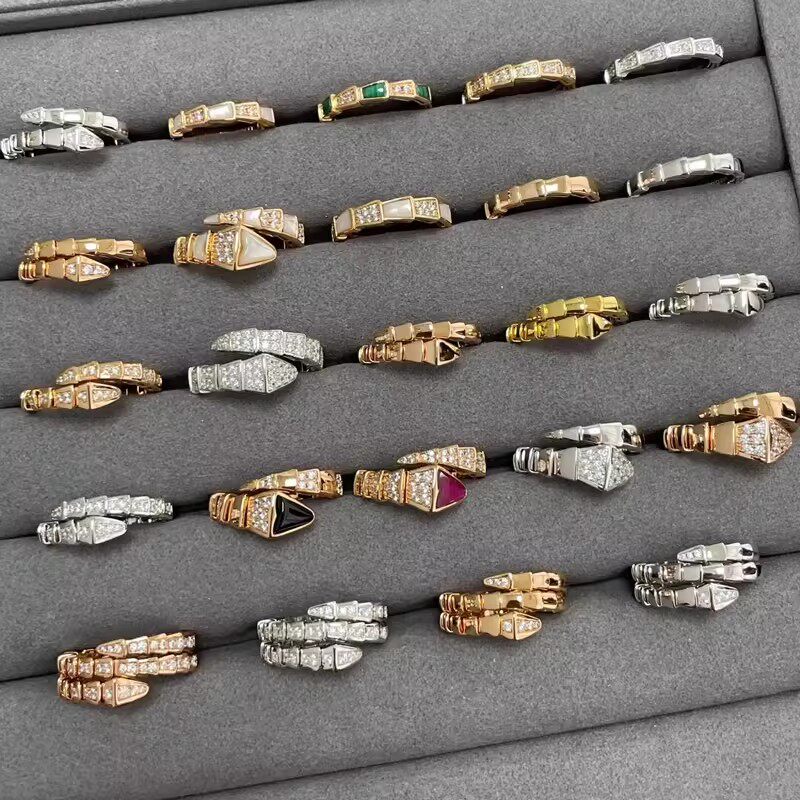蛇形戒指女莫桑钻指环食指精工求婚满天星戒首饰潮不掉色黄金贝母