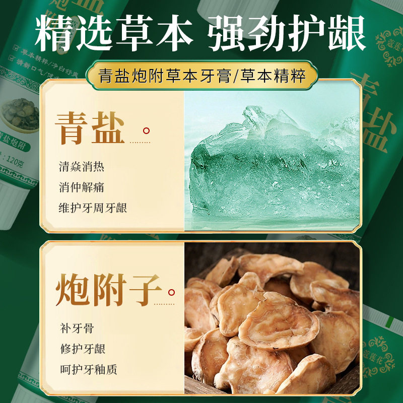 倪老师推荐青盐炮附子牙膏草本中药固洁白清新口气护龈青盐泡芙子